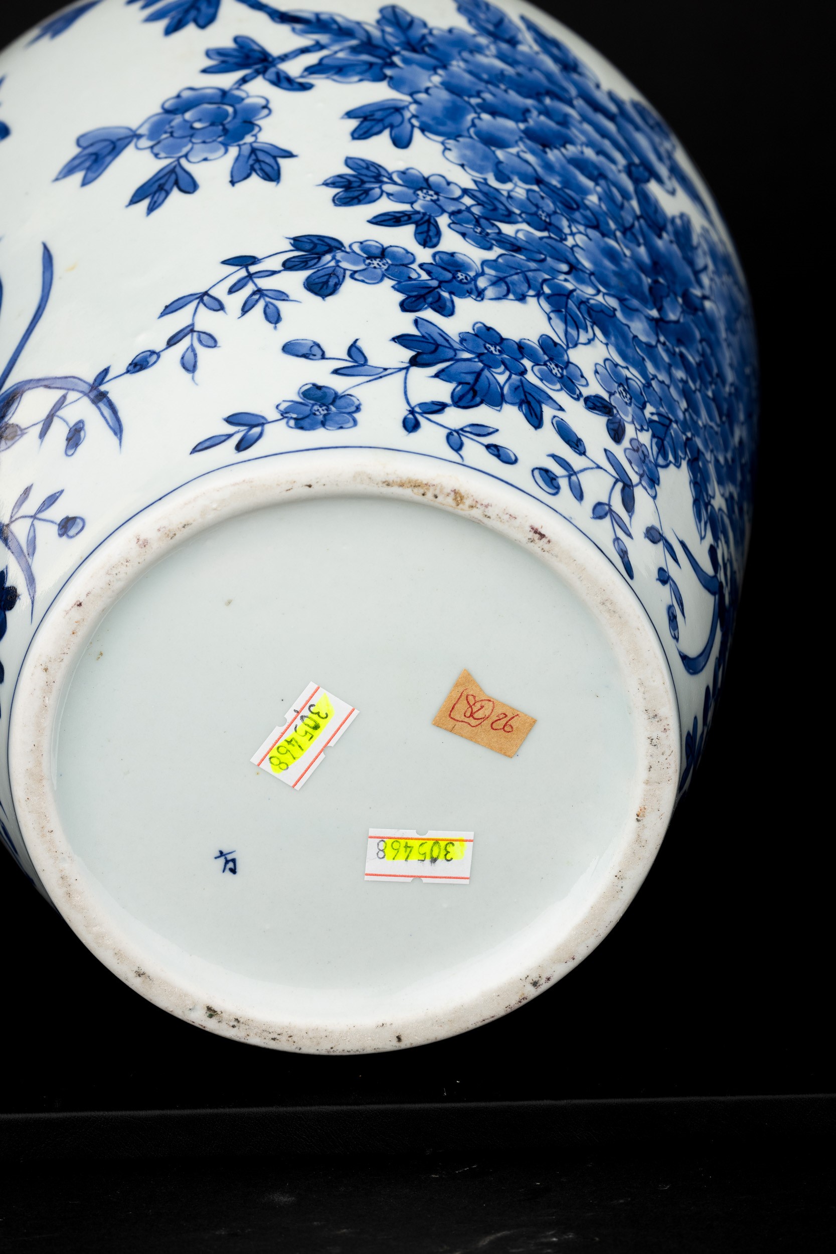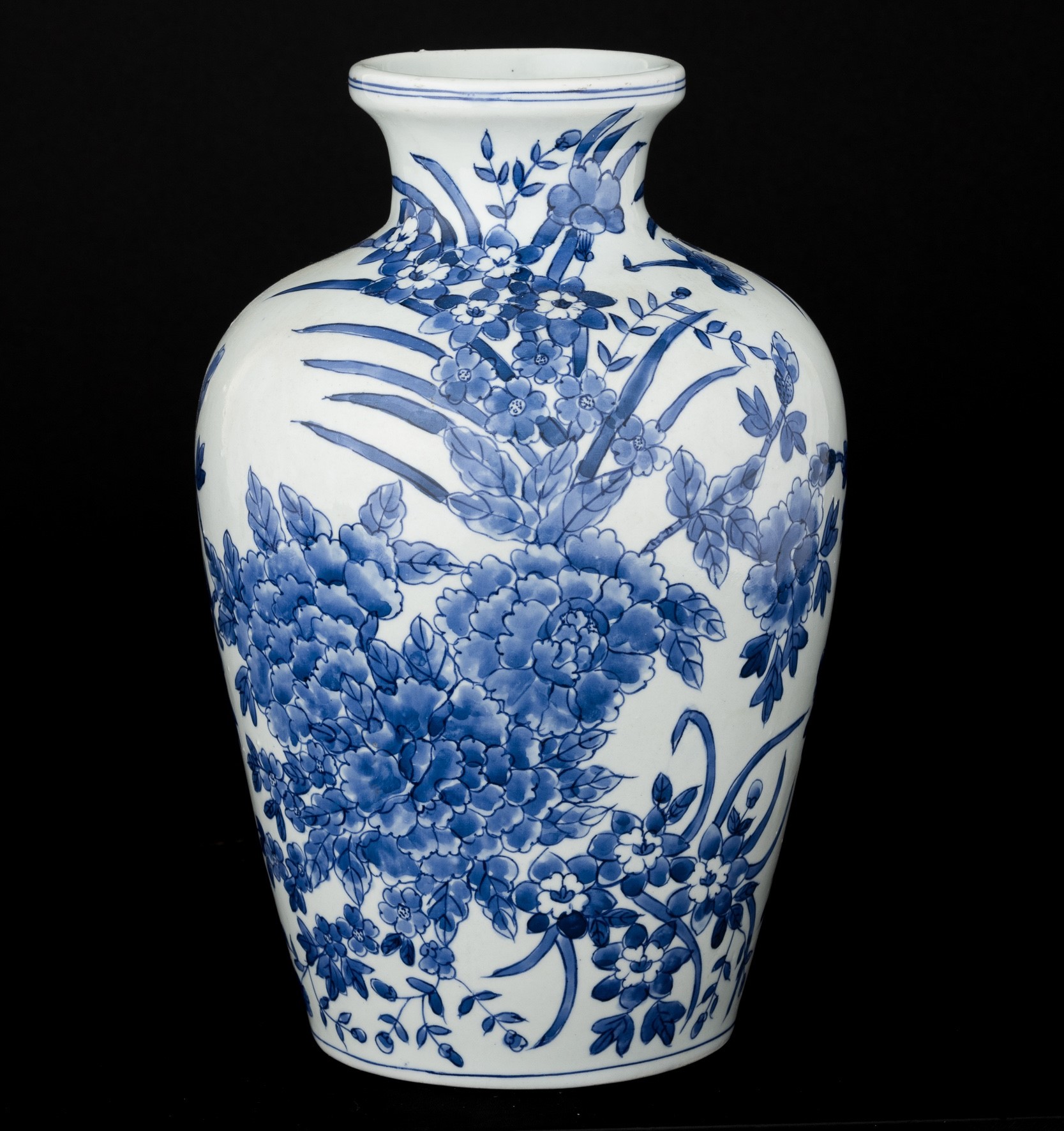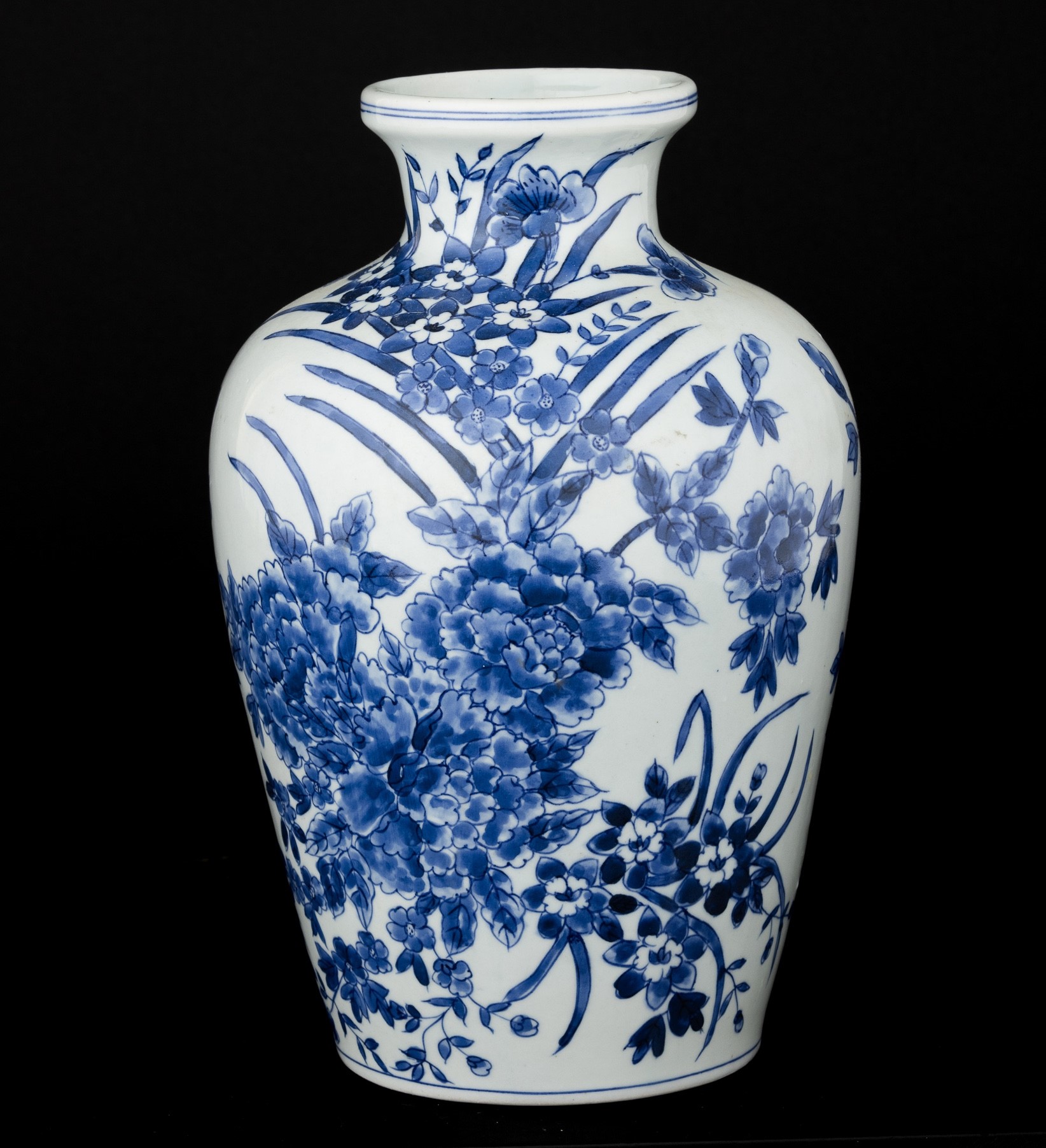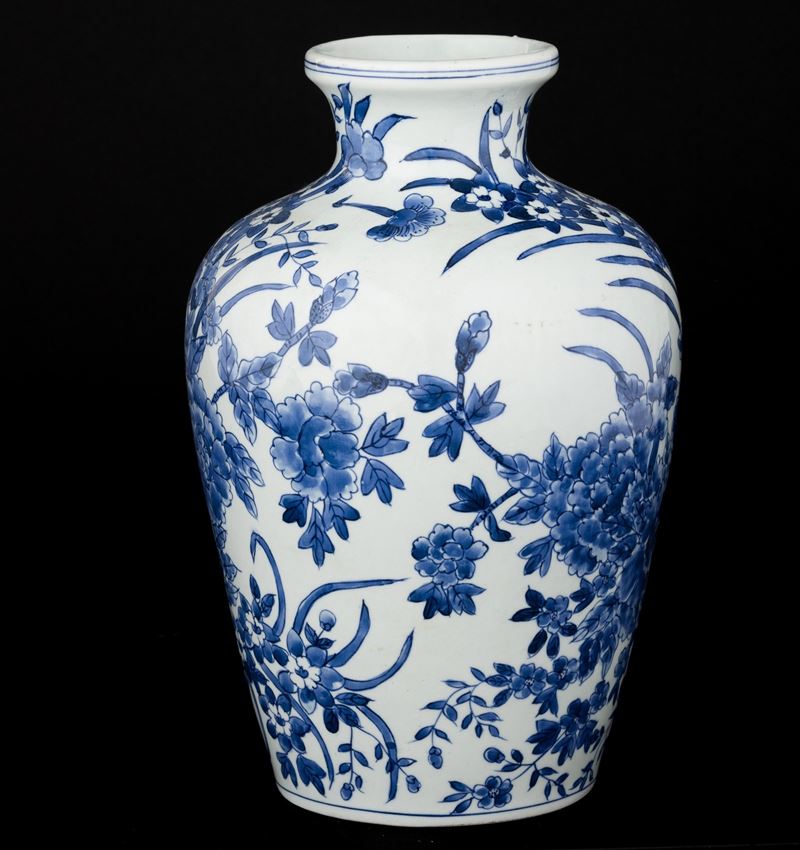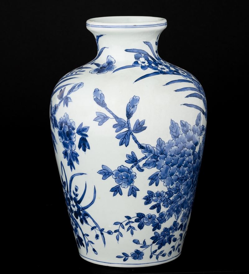 Vaso in porcellana bianca e blu con decoro floreale, Giappone, XX secolo