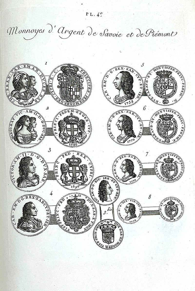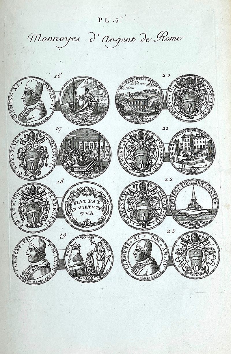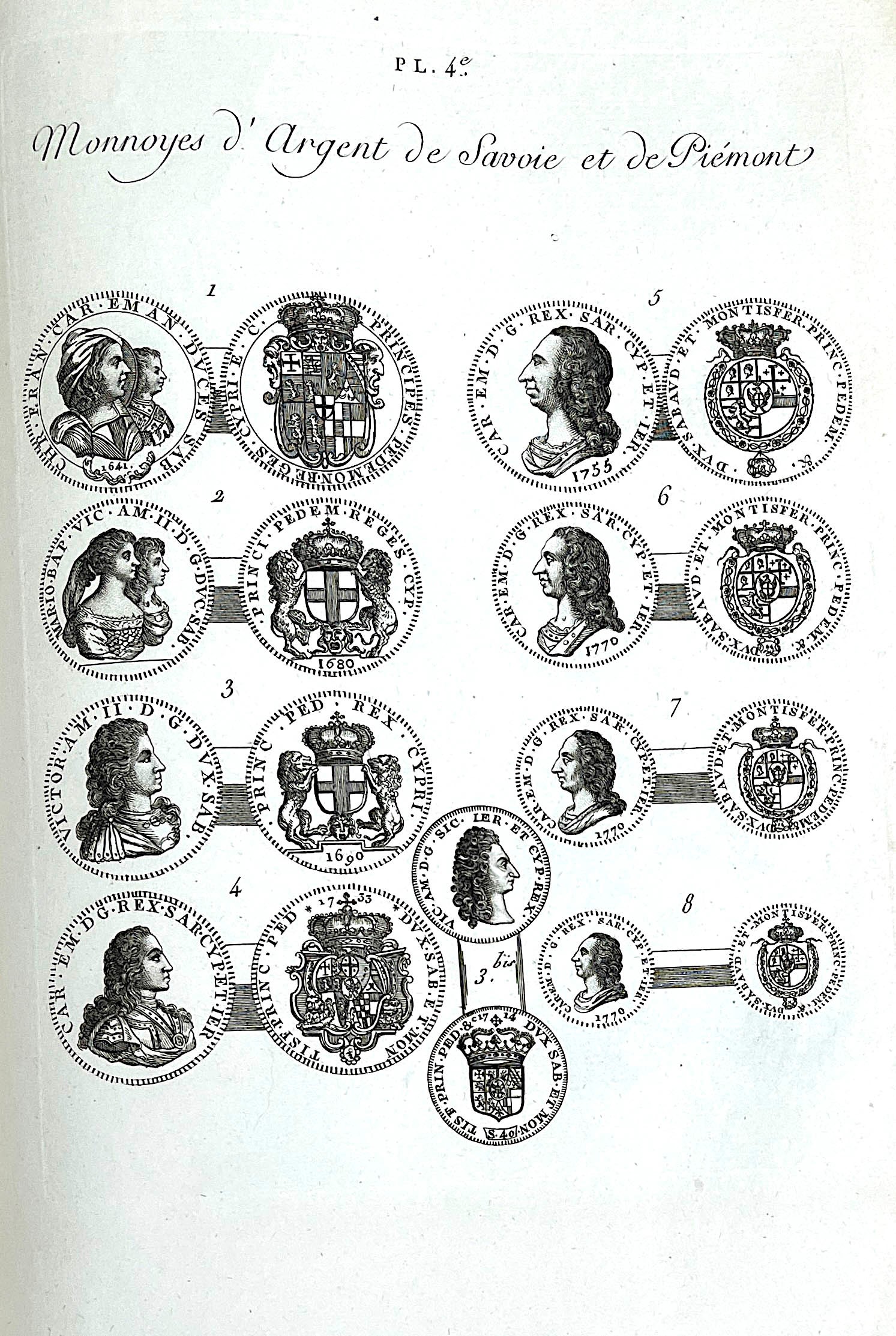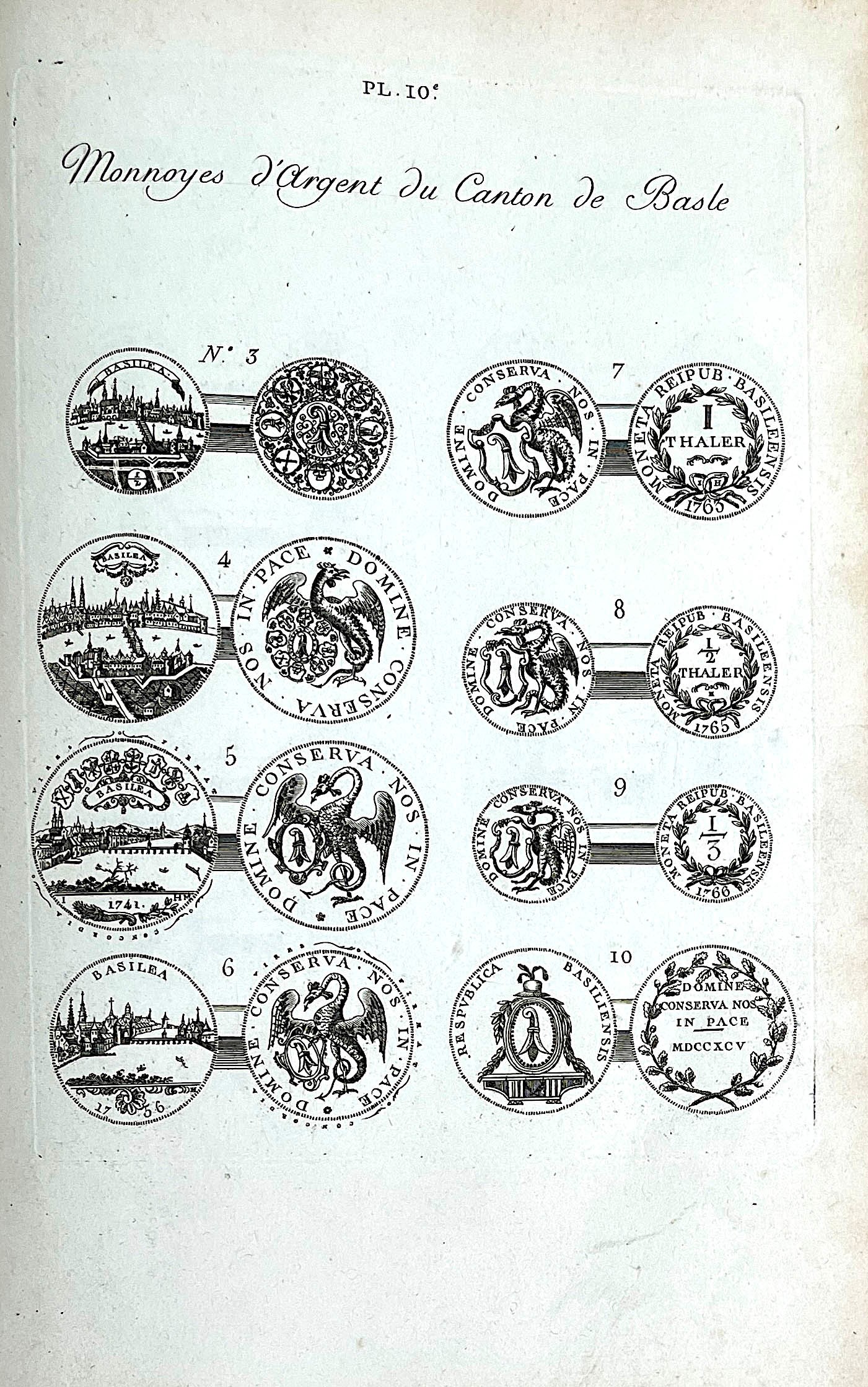 Parigi, 1806. 266 pp. Numerose tavole con bellissimi disegni di monete. Formato in folio circa cm. 25x38. Rilegatura in mezza pelle. Condizioni esterne discrete, interne buone. Qualche strappo.