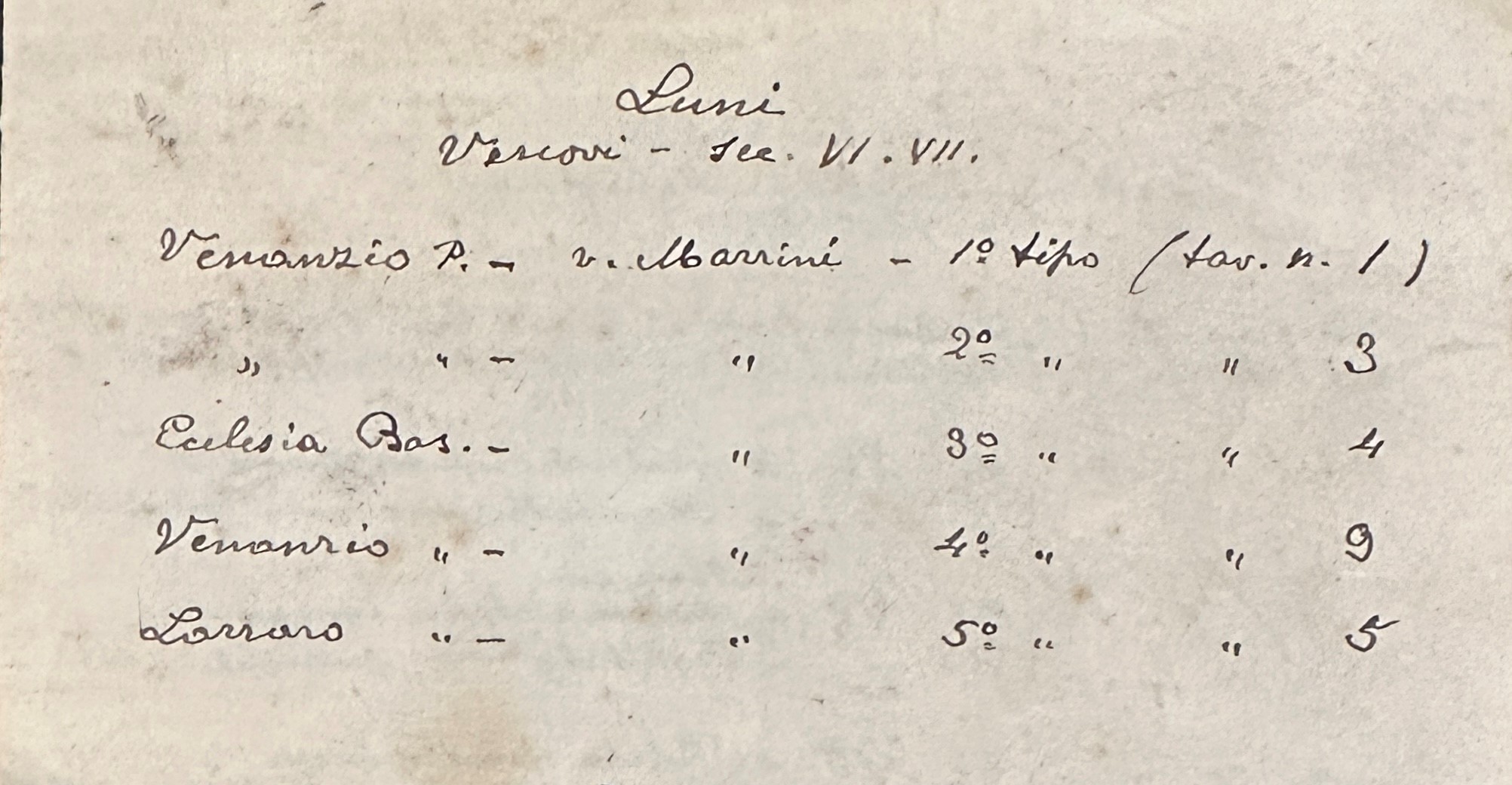 LUNI. PERIODO VESCOVILE (seconda metà VII-inizio VIII sec.). Lotto di sei monete/tessere.