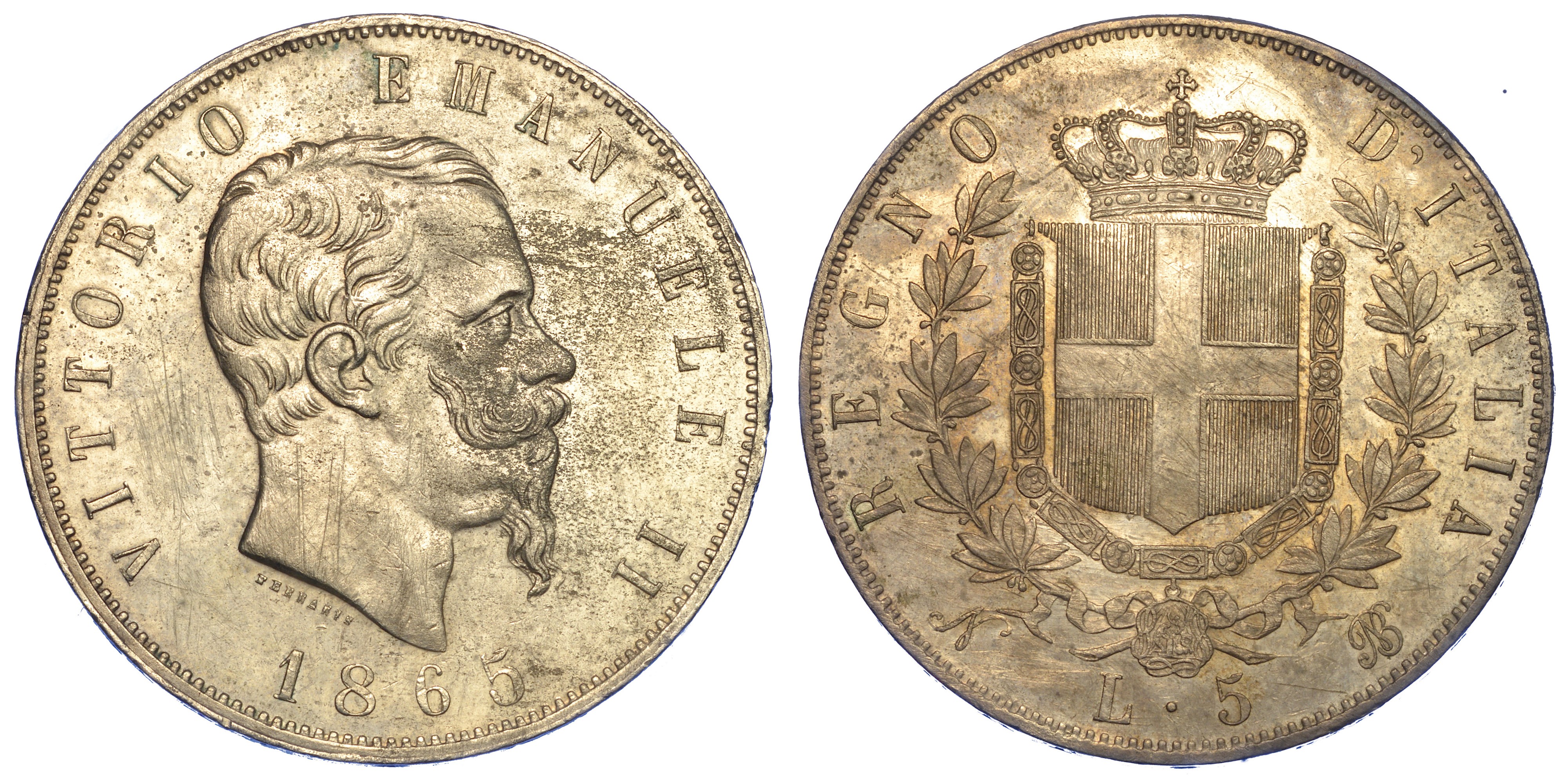 REGNO D'ITALIA. VITTORIO EMANUELE II DI SAVOIA, 1861-1878. 5 Lire 1865. Napoli.