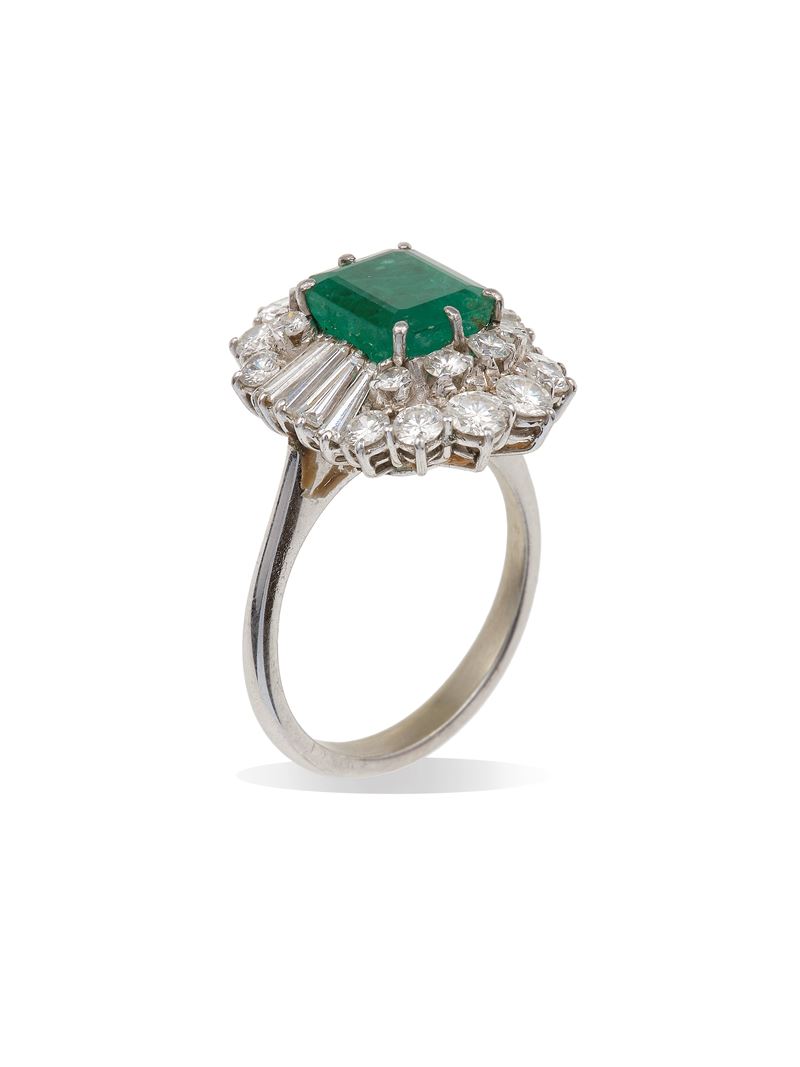 Emerald and diamond ring