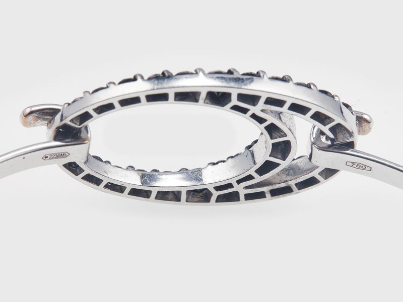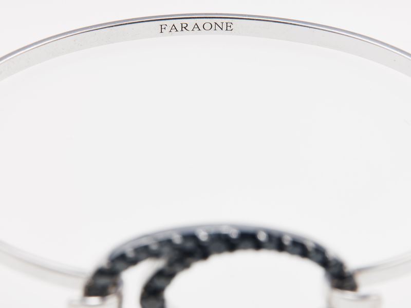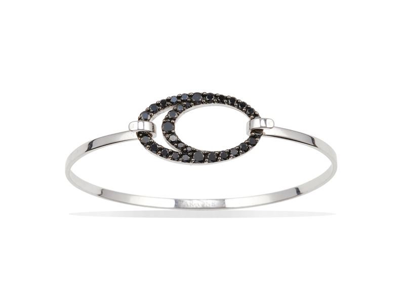 Gold and black diamond bangle. Signed Faraone