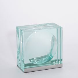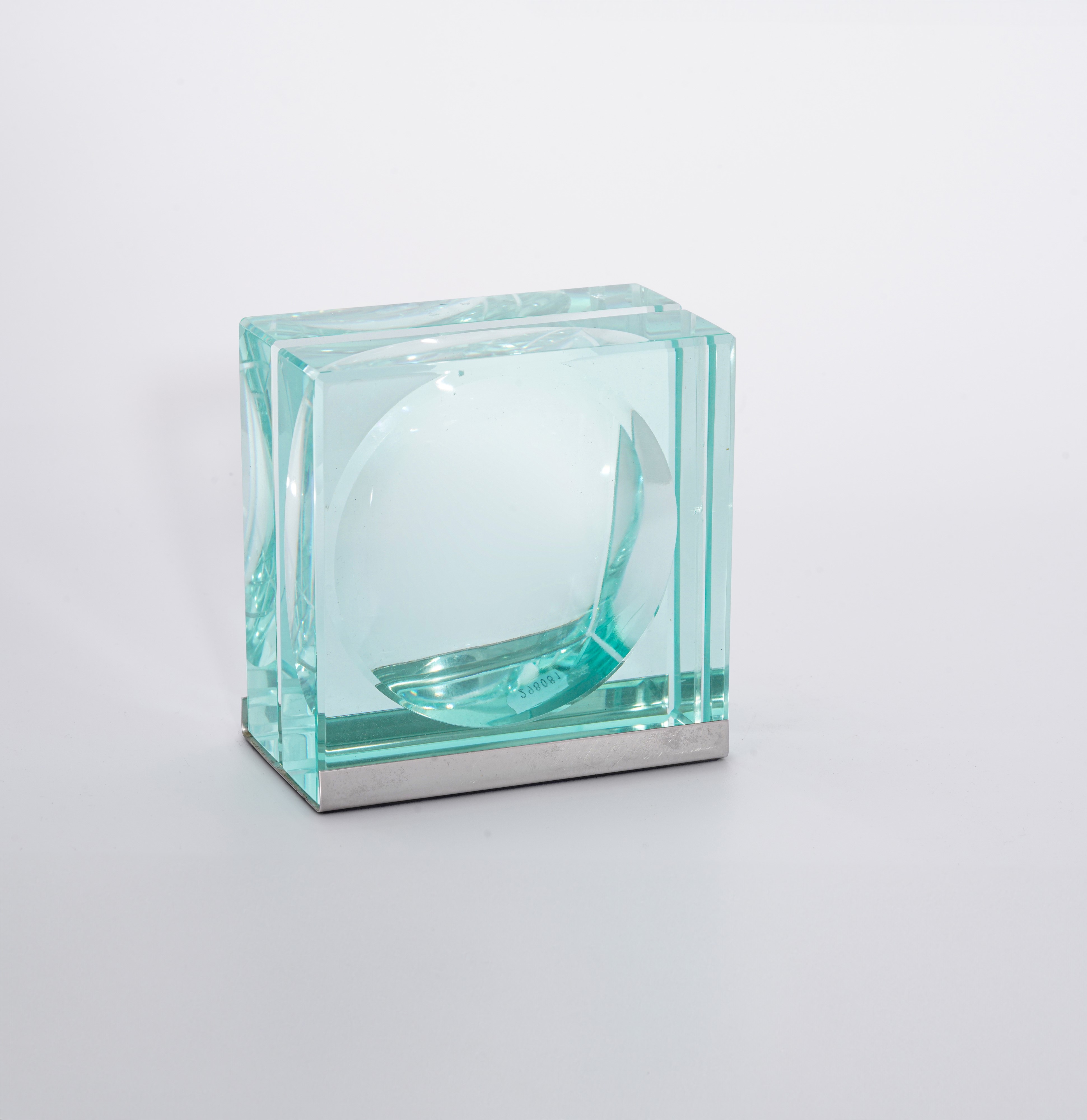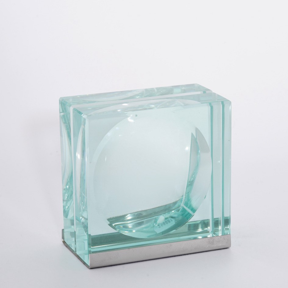 Struttura in vetro e sostegno in metallo.