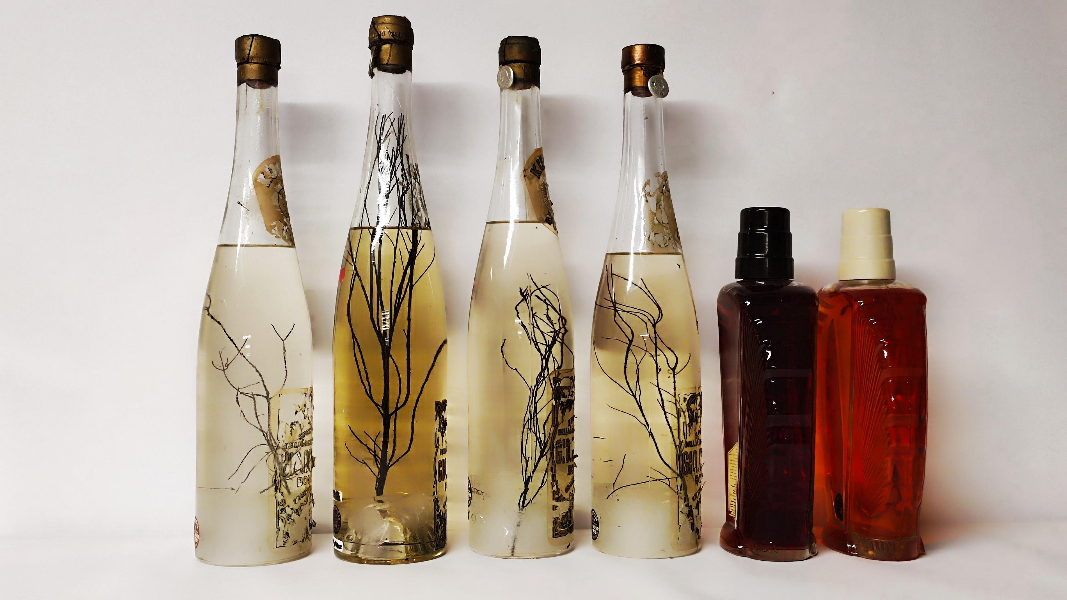 etichette e capsule con segni d'usura del tempo