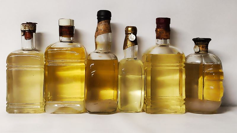 etichette e capsule con segni d'usura del tempo