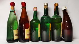 etichette e capsule con segni d'usura del tempo