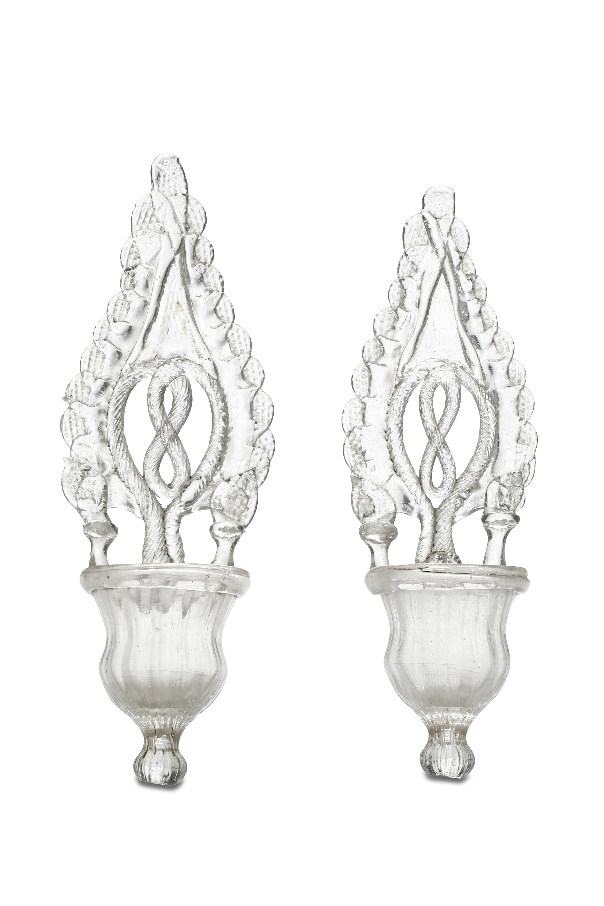 Coppia di acquasantiere in vetro soffiato, XIX secolo