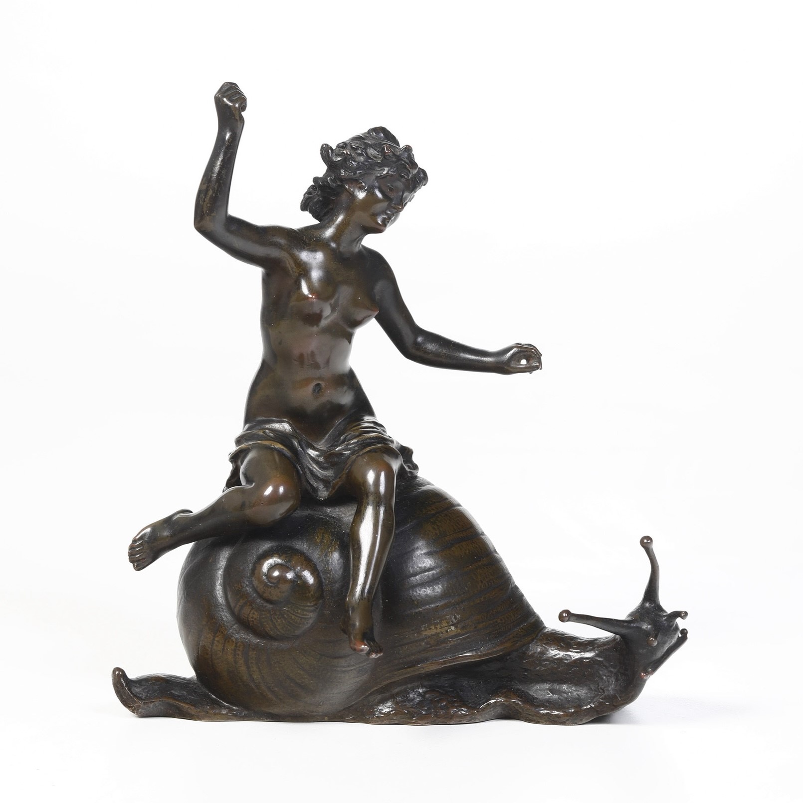 Fanciulla su conchiglia. Firmata Debon, Francia inizio XX secolo