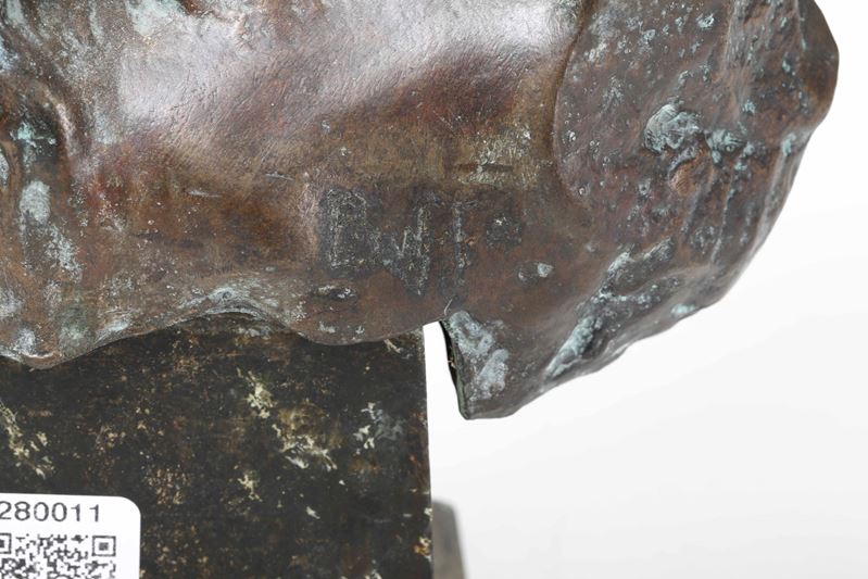 Testa di Cristo in bronzo con base in marmo. Arte del XIX-XX secolo