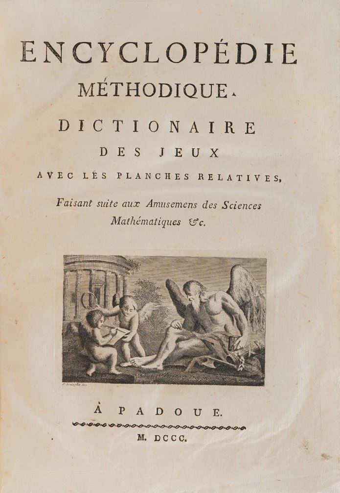 Autori vari. Encyclopedie methodique dictionaire des jeux, Padova 1800.