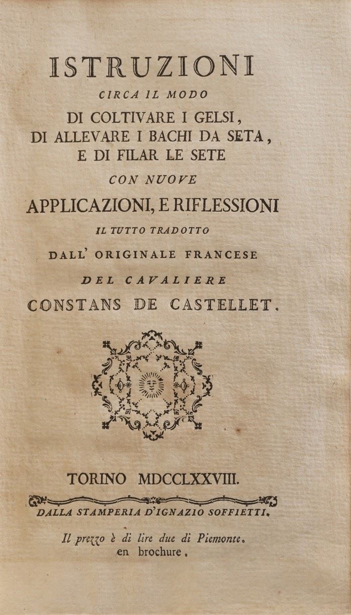 Constans De Castellet (traduttore) Istruzioni circa il modo di coltivare i gelsi...Torino, Soffietti, 1778