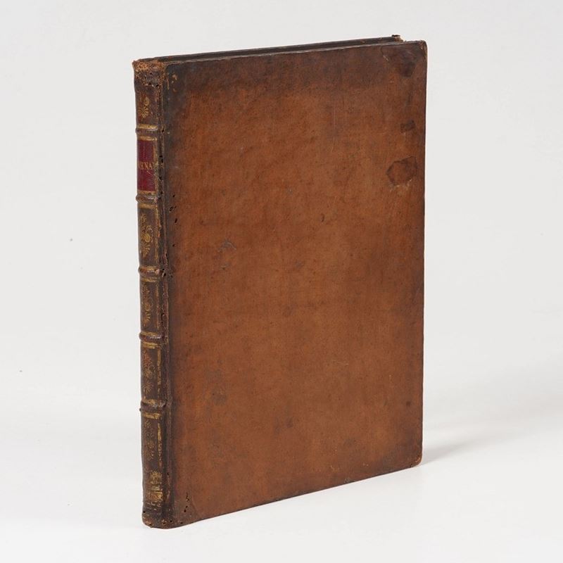 In quarto. Rilegatura coeva in piena pelle, che presenta abrasioni e difetti alle cerniere. Ex libris novecentesco al contropiatto anteriore. Lieve uniforme brunitura dovuta alla qualità della carta, un poco accentuata sulle ultime pagine.