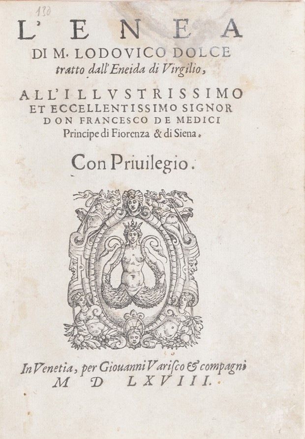 Dolce Lodovico L'Enea... tratto da l'Eneide di Virgilio. In Venetia, per Giovanni Varisco e compagni 1568.