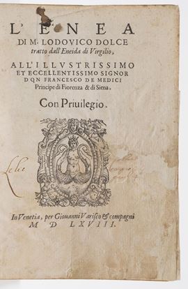 Dolce Lodovico L'Enea... tratto dall'Eneide di Virgilio... in Venetia, per Giovanni Varisco e compagni, 1568.