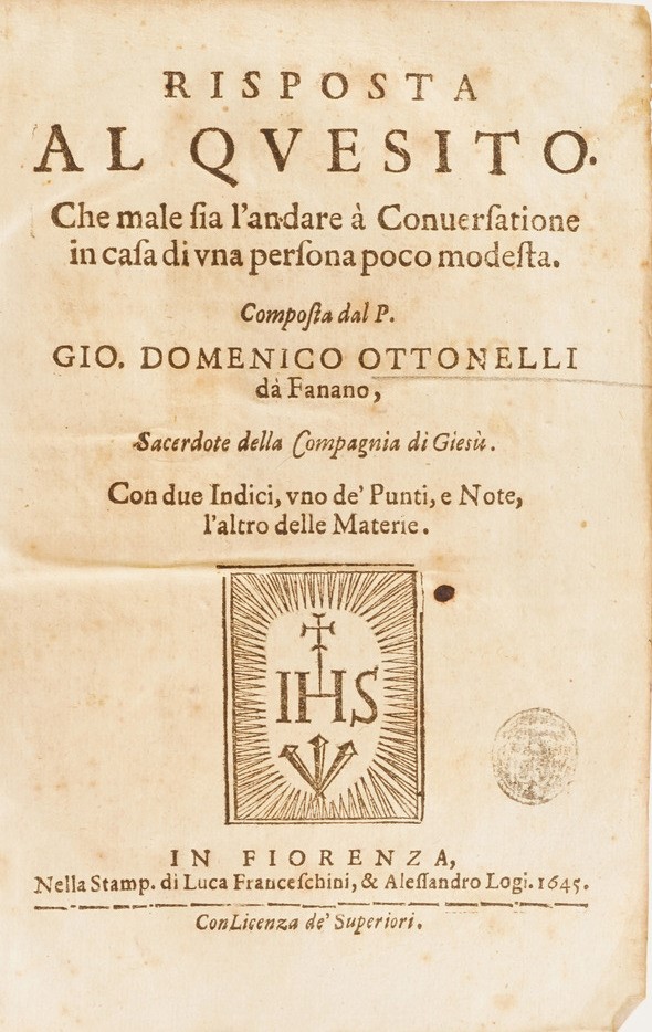 Gio Domenico Ottonelli Risposta al Quesito che male sia l’andare conversazione in casa di una persona poco modesta...Firenze 1645