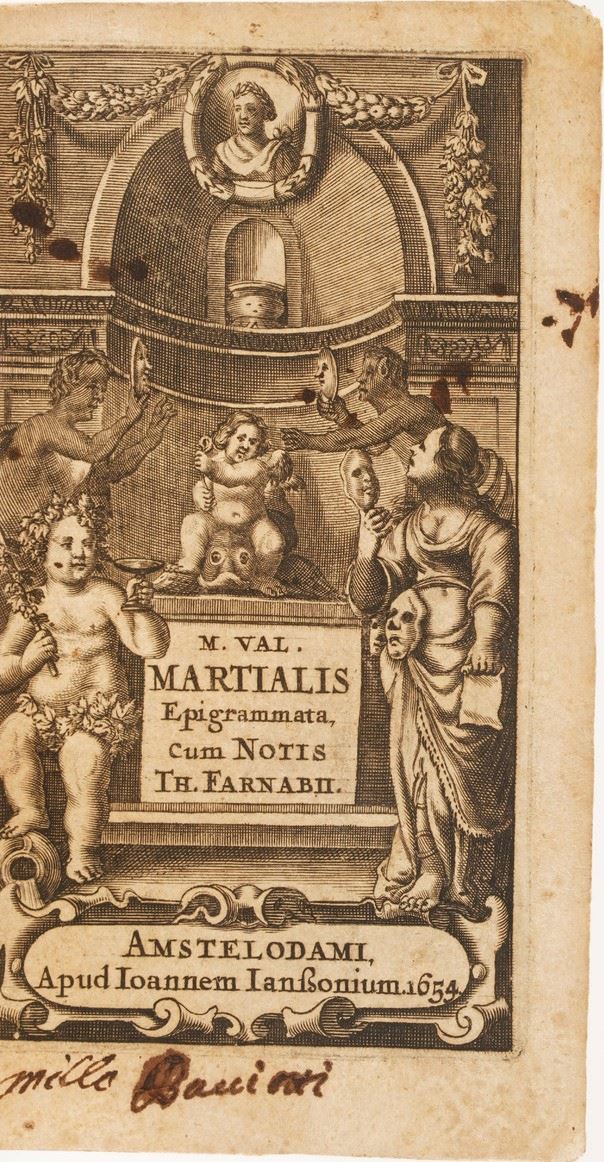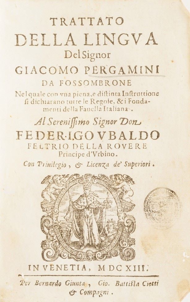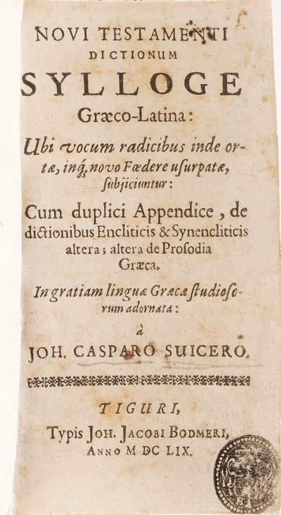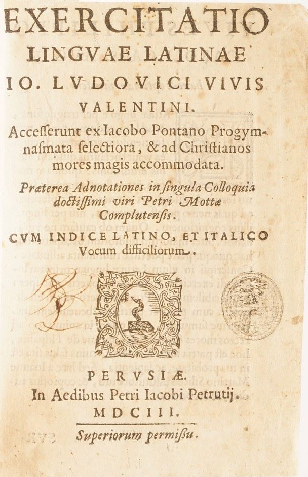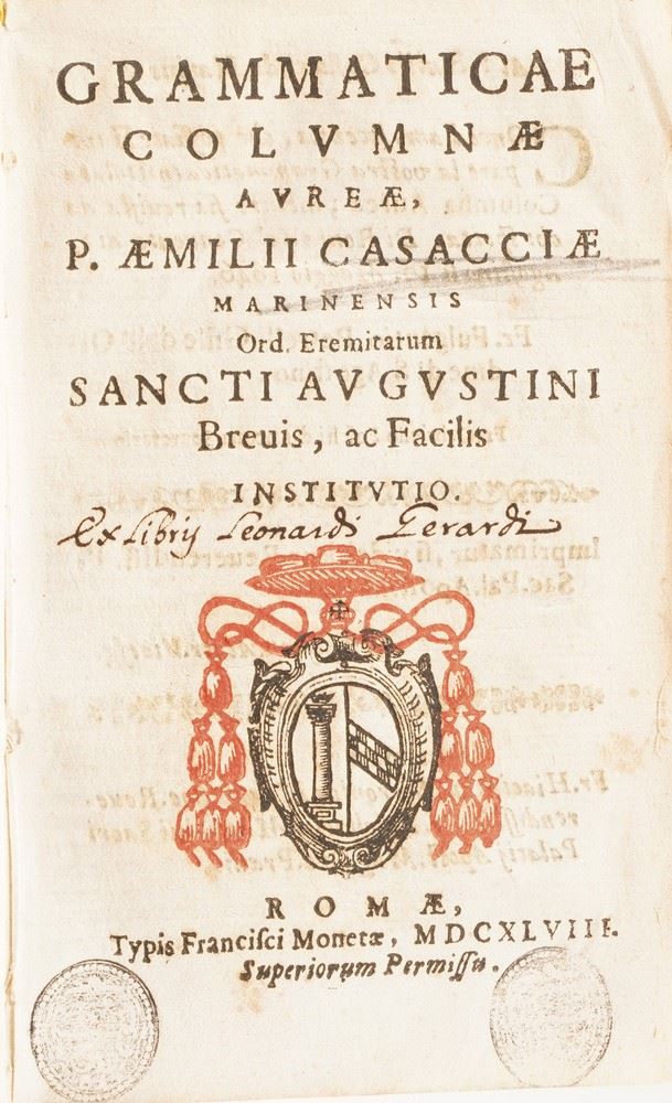 M. Val. Martialis Epigrammata, Amsterdam 1654; Grammaticae Columnae p. aemilii casacciae, Roma 1648; Trattato della lingua del signor Giacomo Pergamini, Venezia 1613; Novi Testamenti Dictionum Sylloge Graeco - Latina, Tiguri 1659; Excertitatio Linguae Latinae, Parigi 1603; Idea Methodica et brevis encyclopaediae, 1606; Petri Scholirii Antuerpiensis Diogenes Cynicus, 1635; Enchiridion ad verborum copiam, 1619; Aeli Antonii Nebrisensis de istitutione grammaticae, 1678; J. A. Comenii Janua Linguarum Reserata Sive Seminarium Linguarum, Lipsia 1632; Analecta Observationum Latinae Linguae Studio et Opera Rodolphi Goclenii, 1598.