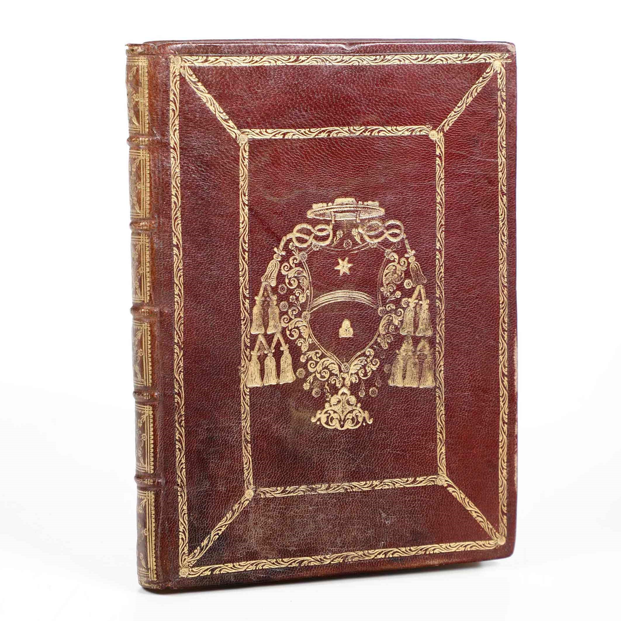 In quarto. Rilegatura coeva in marocchino rosso. Armi cardinalizie ai due frontespizi. Danno da umidità che riguarda il piede di alcune carte. Proposta come rilegatura decorativa