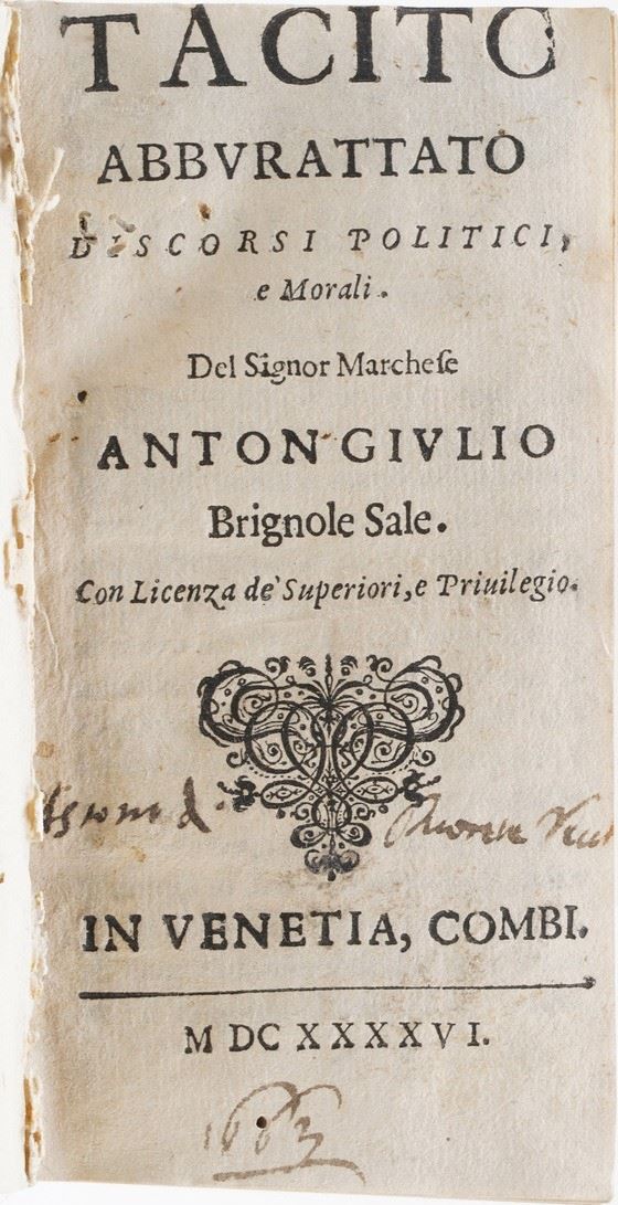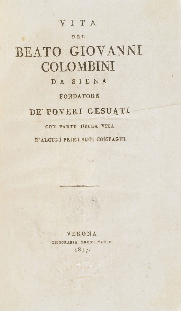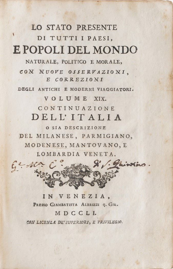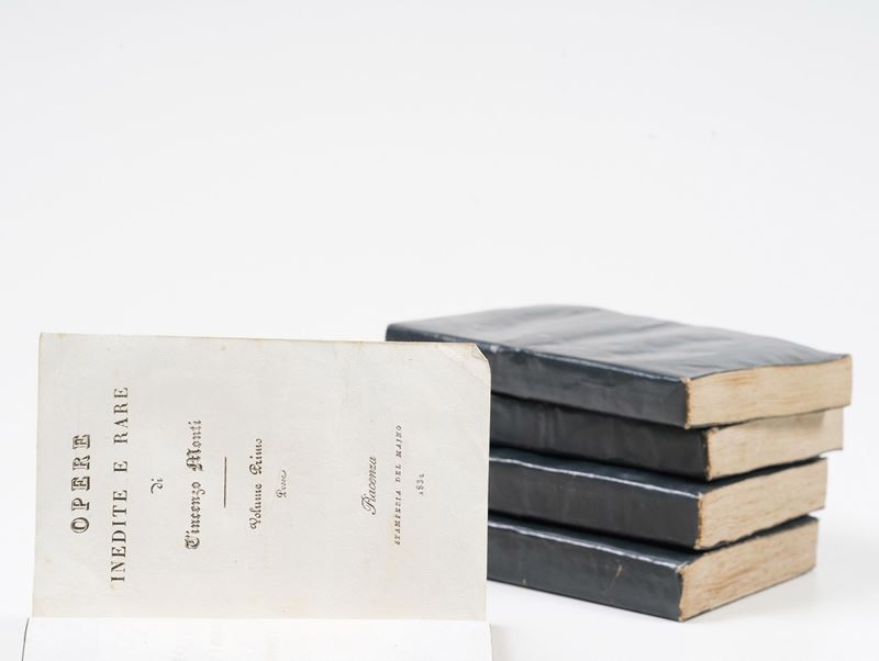 Al lotto si aggiunge: Pulcinella finto bravo overo amor per vendetta comedia, Roma 1728; Nuovi scherzi di fortuna di Gio. Ambrosio Marini, Bologna 1671; Tacito abburattato discorsi politici e morali, Venezia 1646; Opere inedite e rare di Vincenzo Monti (voli I-II-III-IV-V); Vita del beato Giovanni Colombini da Siena, Verona 1817; Lo statuto presente di tutti i paesi e i popoli del mondo naturale politico e morale, Venezia 1751.