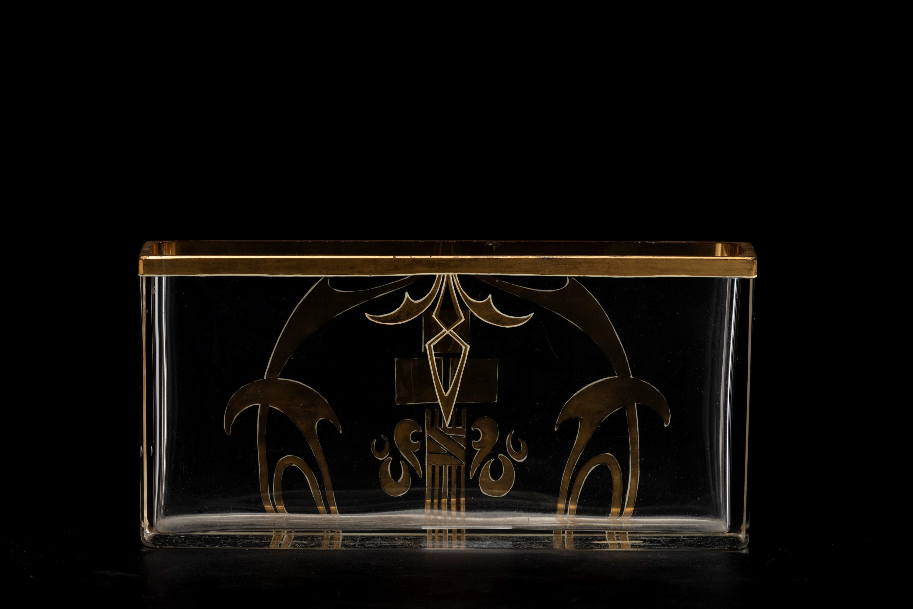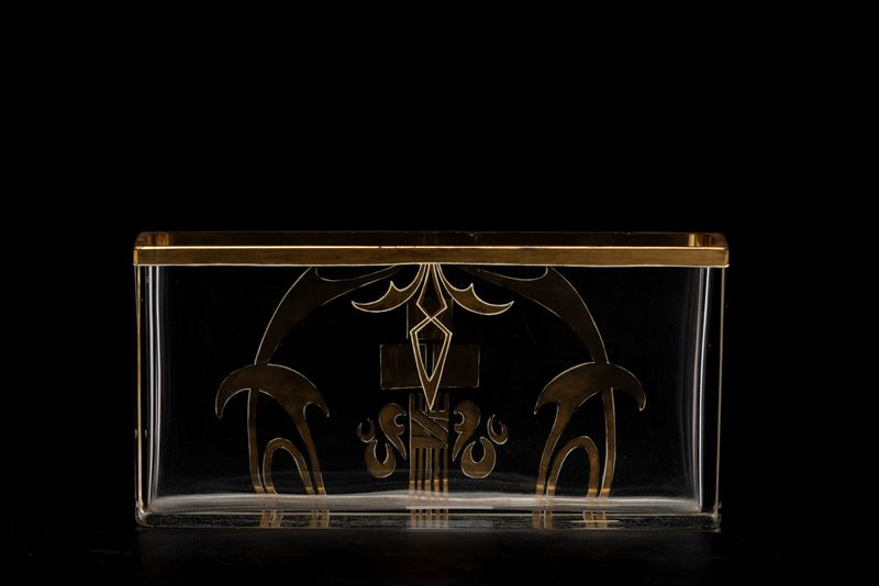 Square-section crystal bowl with gilded geometric decoration