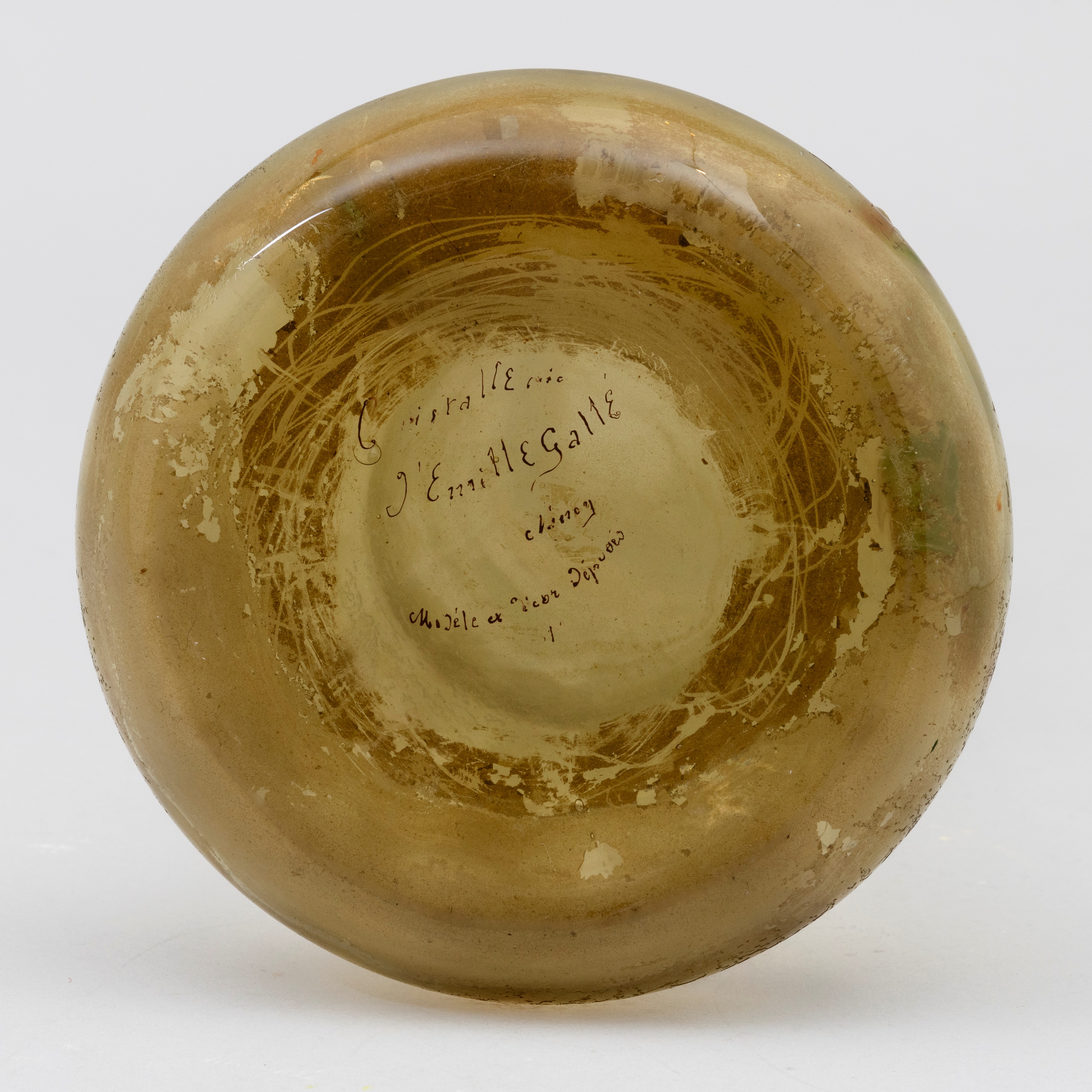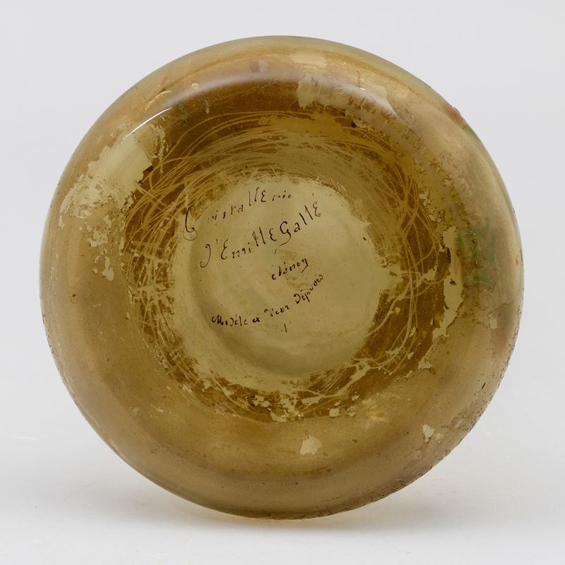 A blown glass vase with a polychrome enamel decor. Enamelled signature under the base