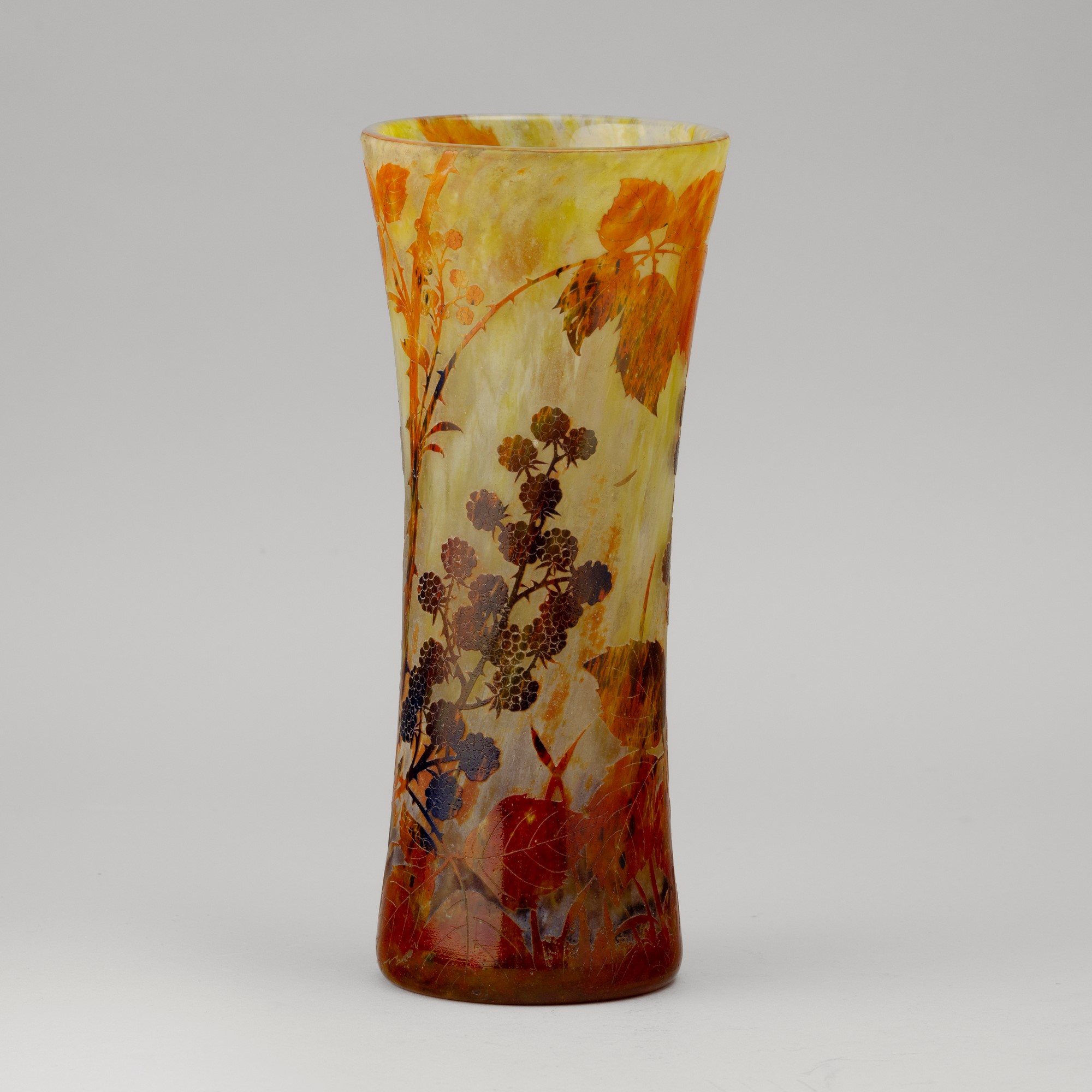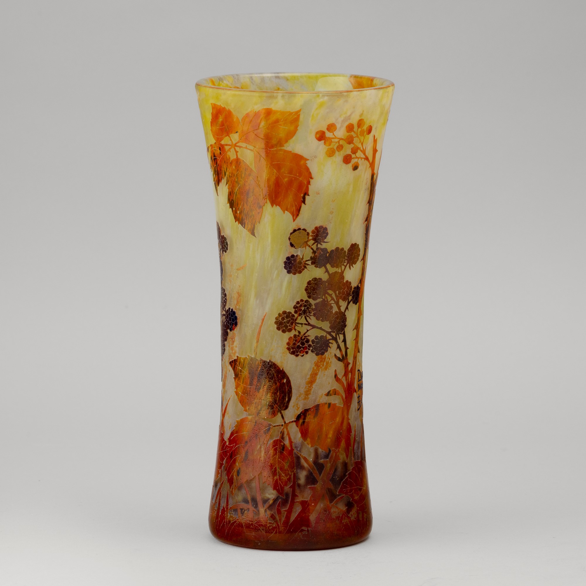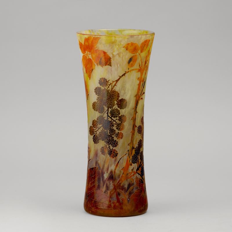 A cameo glass vase with a decor of brambles. Embossed signature