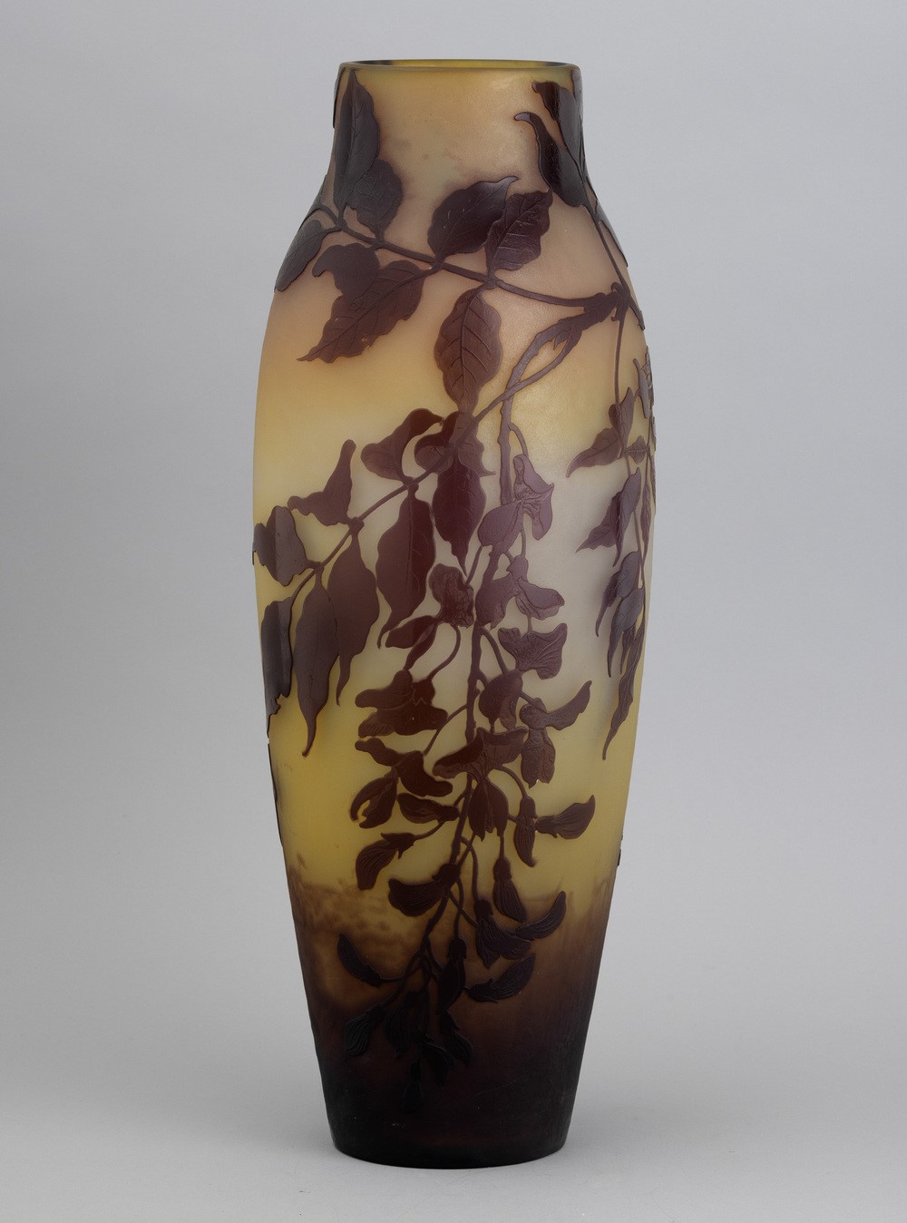 A cameo glass vase with a decor of locust flowers. Embossed signature