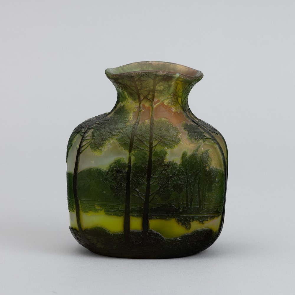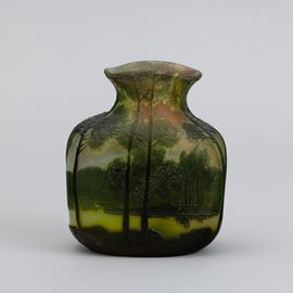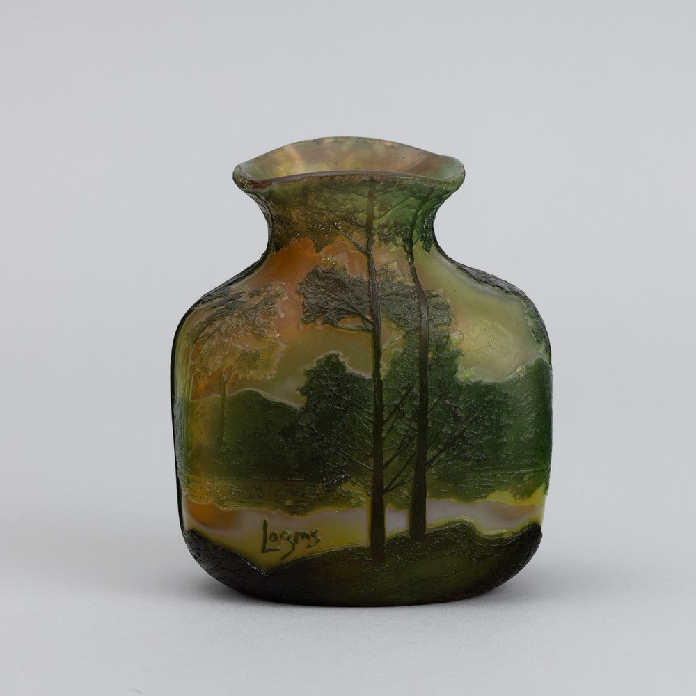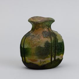 A cameo glass vase with a landscape decor. Embossed signature