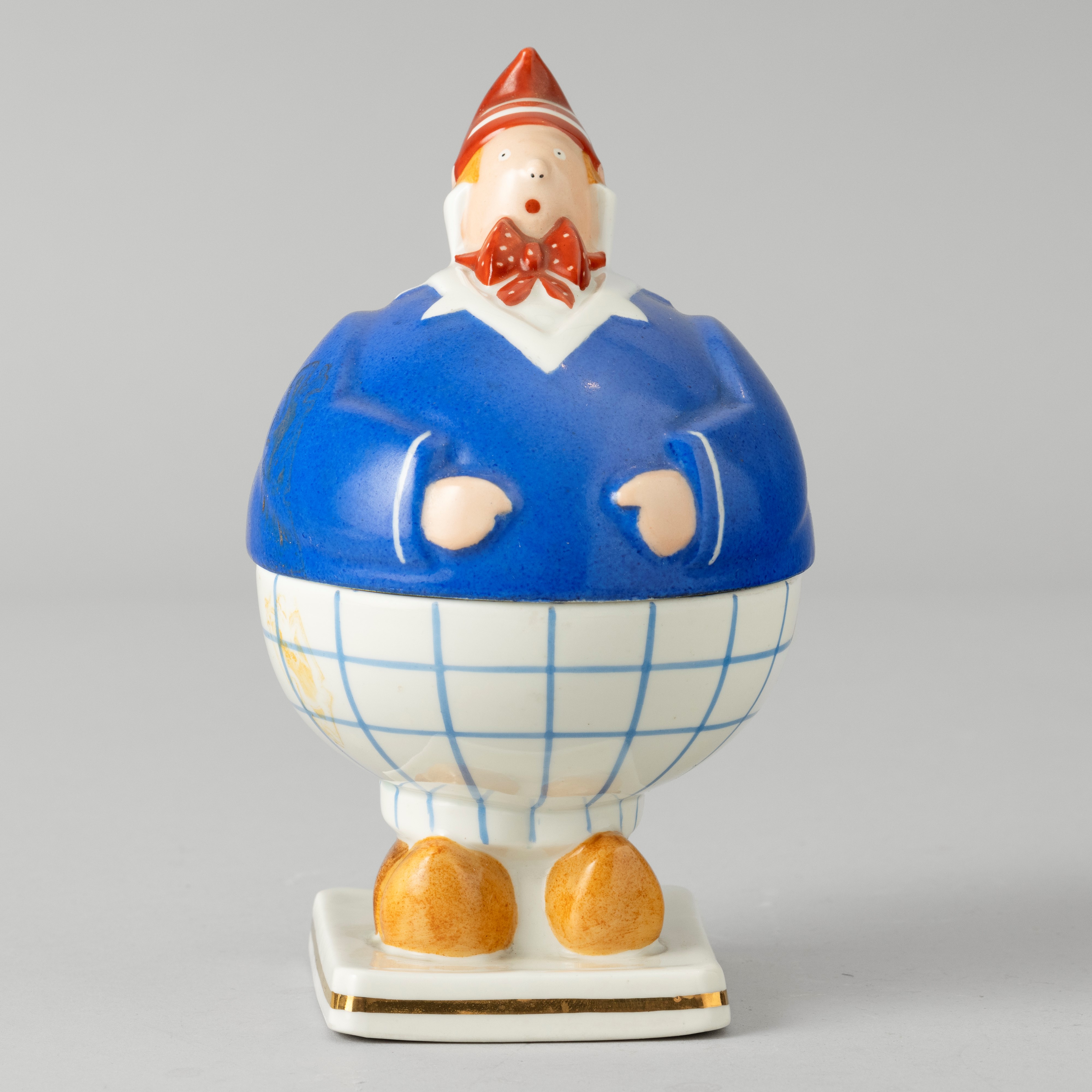 A porcelain box with a polychrome enamel decor. Maker's mark. Faults