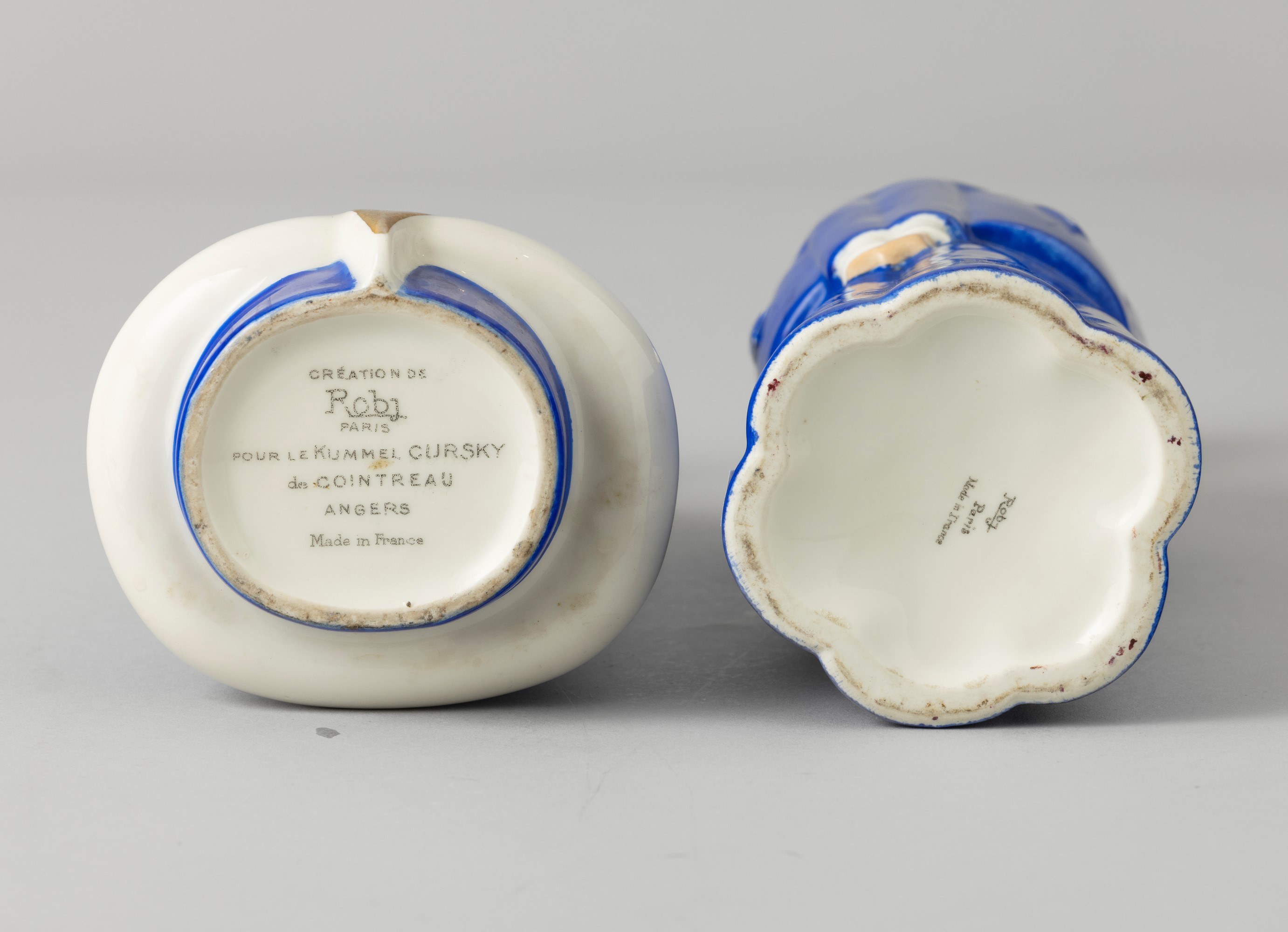 Two porcelain bottles in the shape of sailors with a polychrome enamel decor. Maker's mark