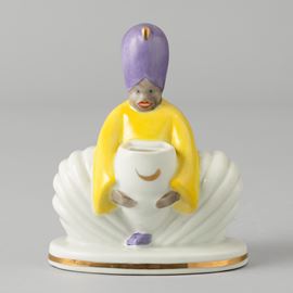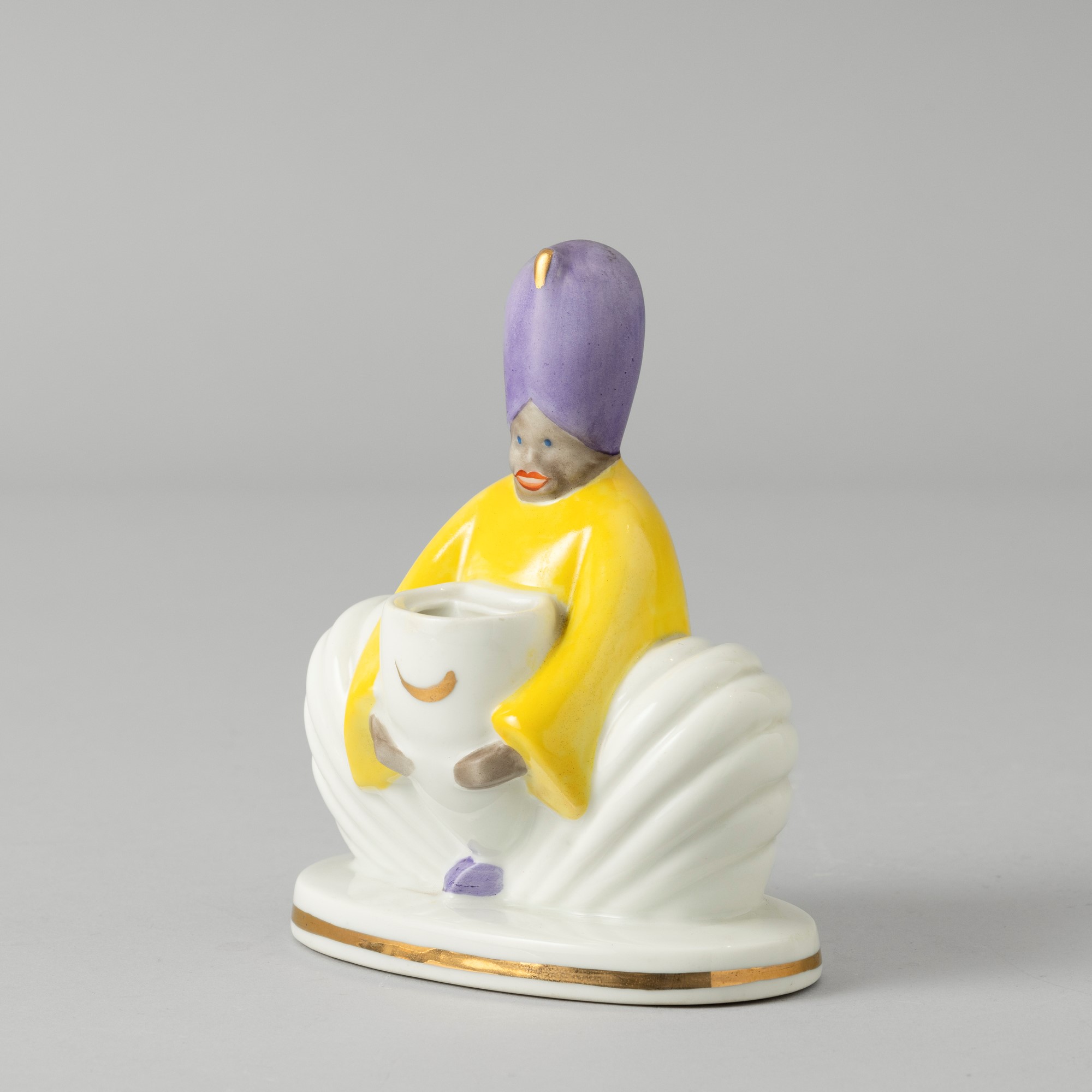 A porcelain veilleuse with a polychrome enamel and gilt decor. Maker's mark