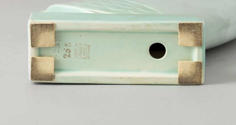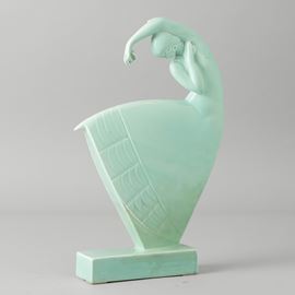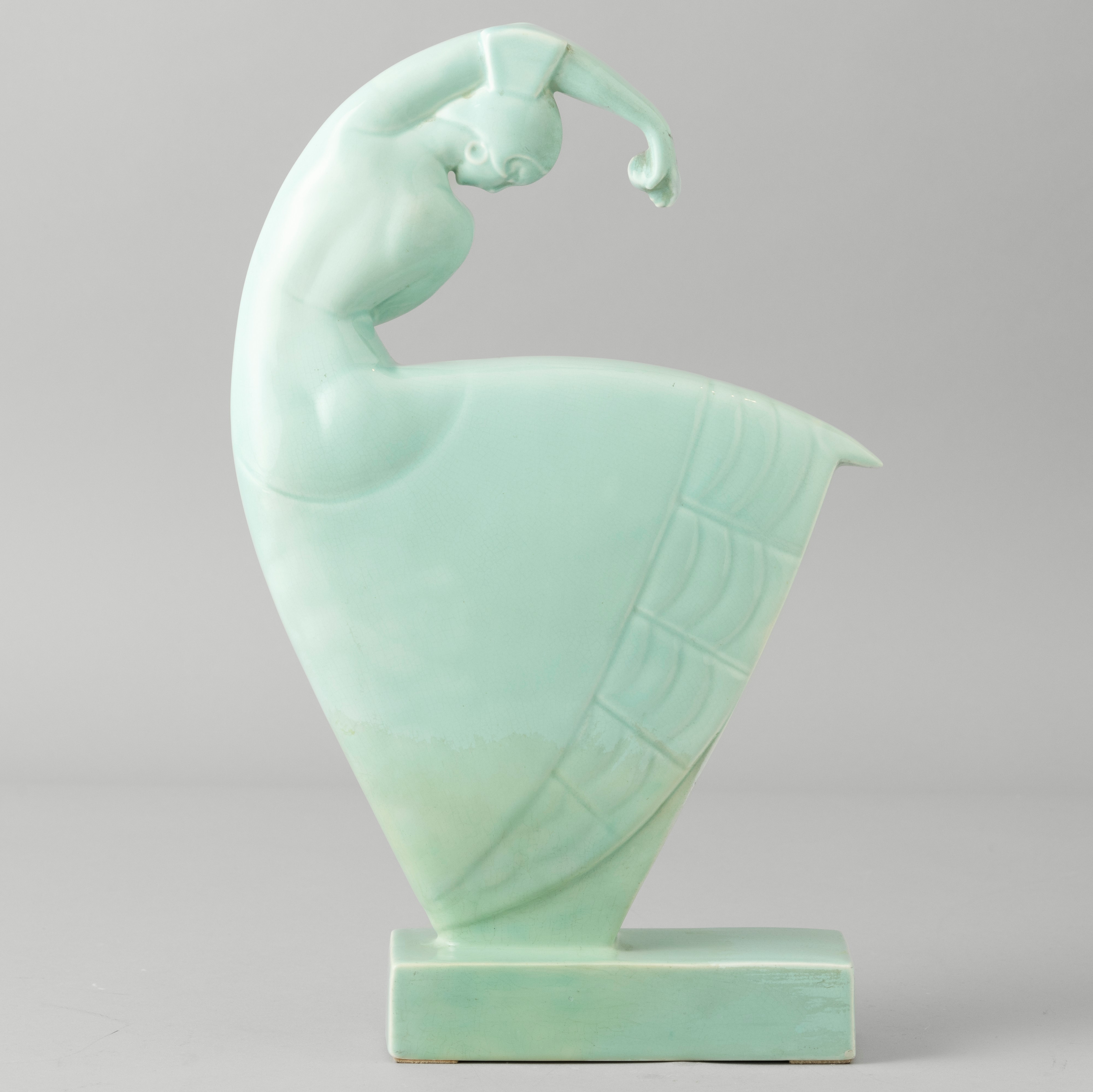 A porcelain sculpture of a Spanish dancer with monochrome celadon enamels. Maker's mark. Restored parts