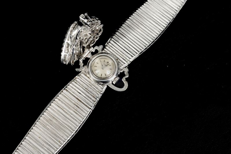 Refined 18k white gold Secret Montre with diamonds and side hinge opening, manual winding