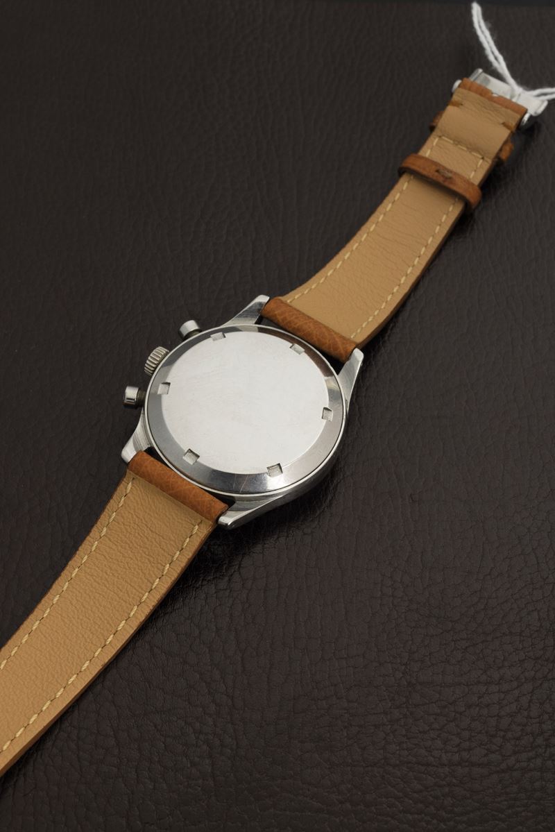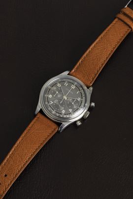 Steel cal 321 chronograph two-tone gray dial, pump keys. stepped case and screw-down case back
