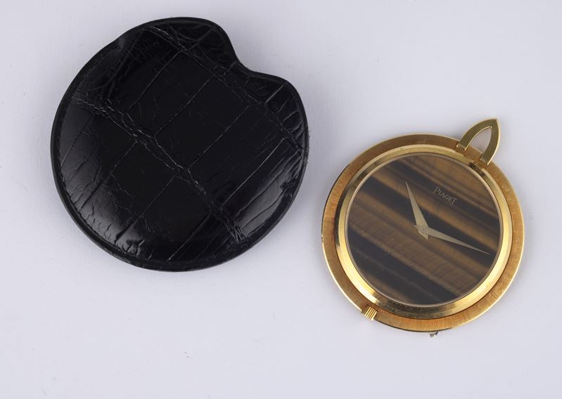 Precious Openface pocket watch with Tiger's Eye stone dial, manual winding extra-flat movement