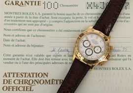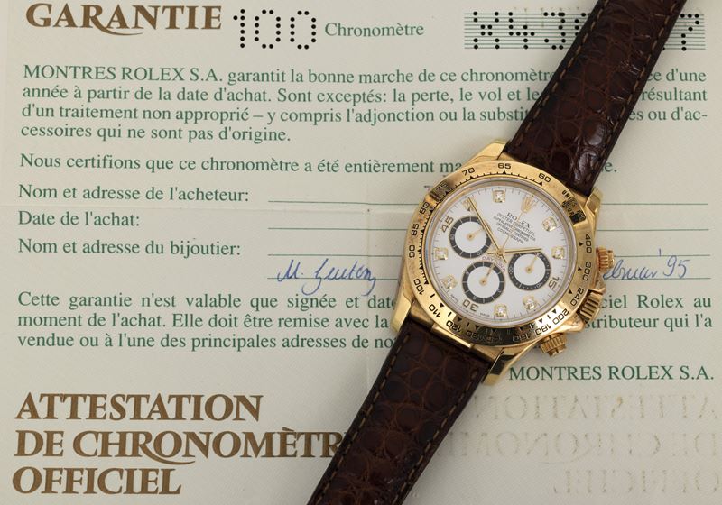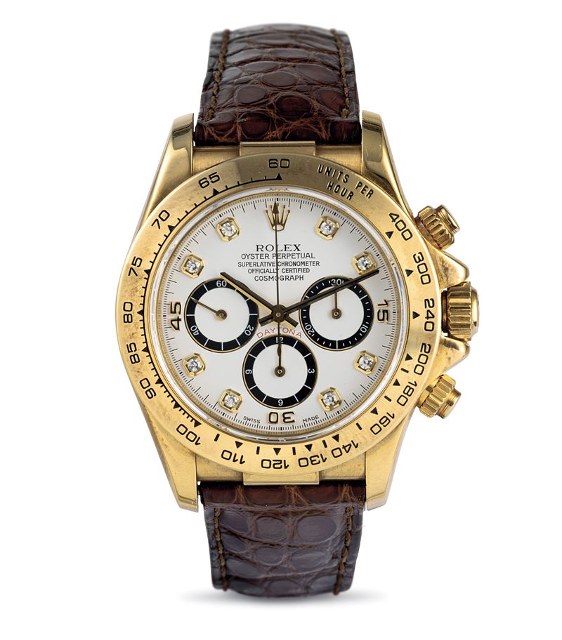 Daytona ref 16518, 18k yellow gold, white dial diamond markers, never polished, accompanied by original guarantee