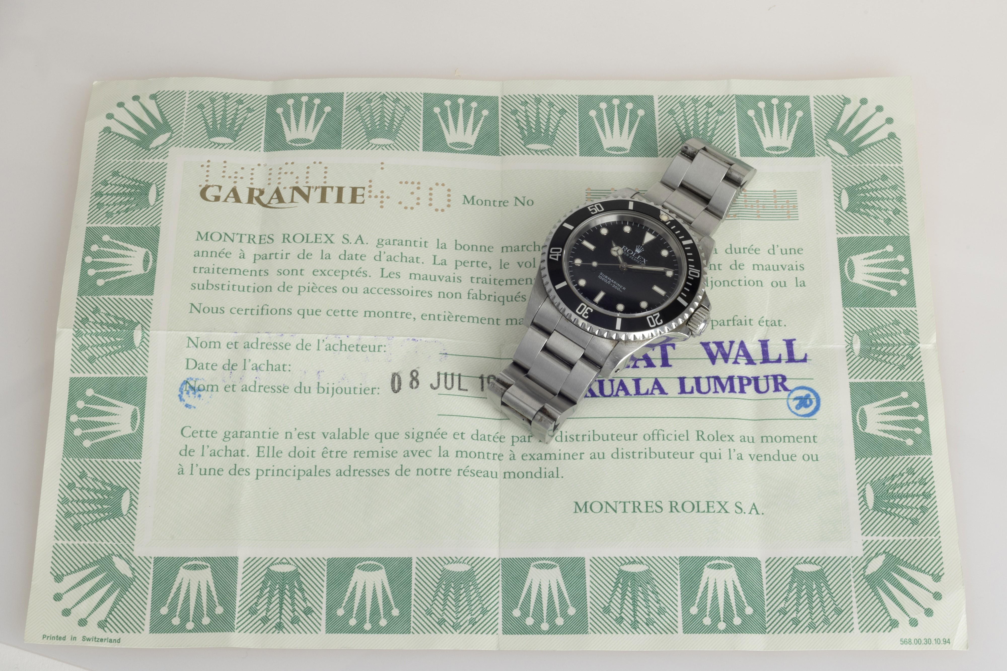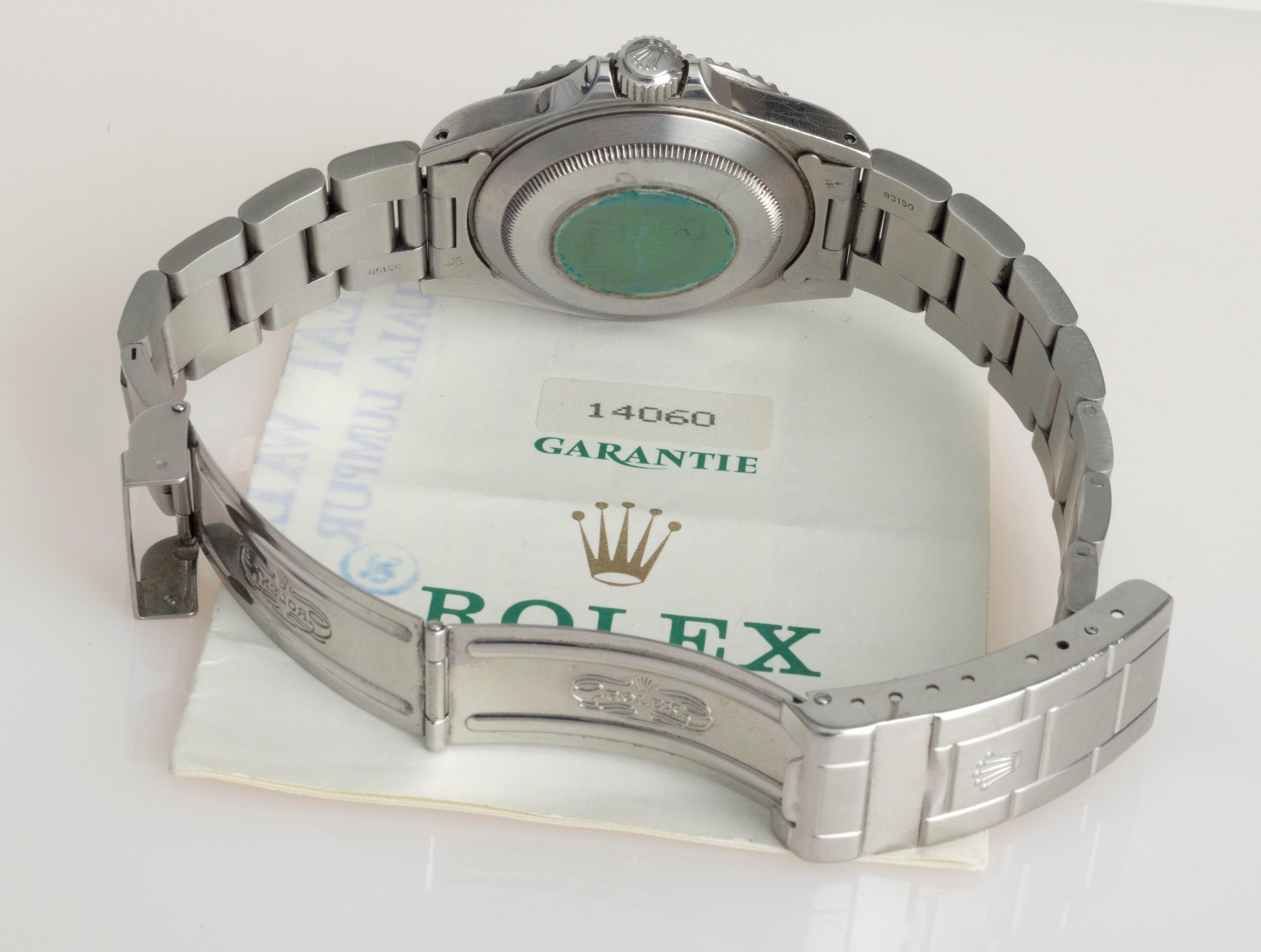 Oyster Perpetual Submariner ref 14060 steel, black dial hour markers tumblers, Oyster bracelet accompanied by guarantee