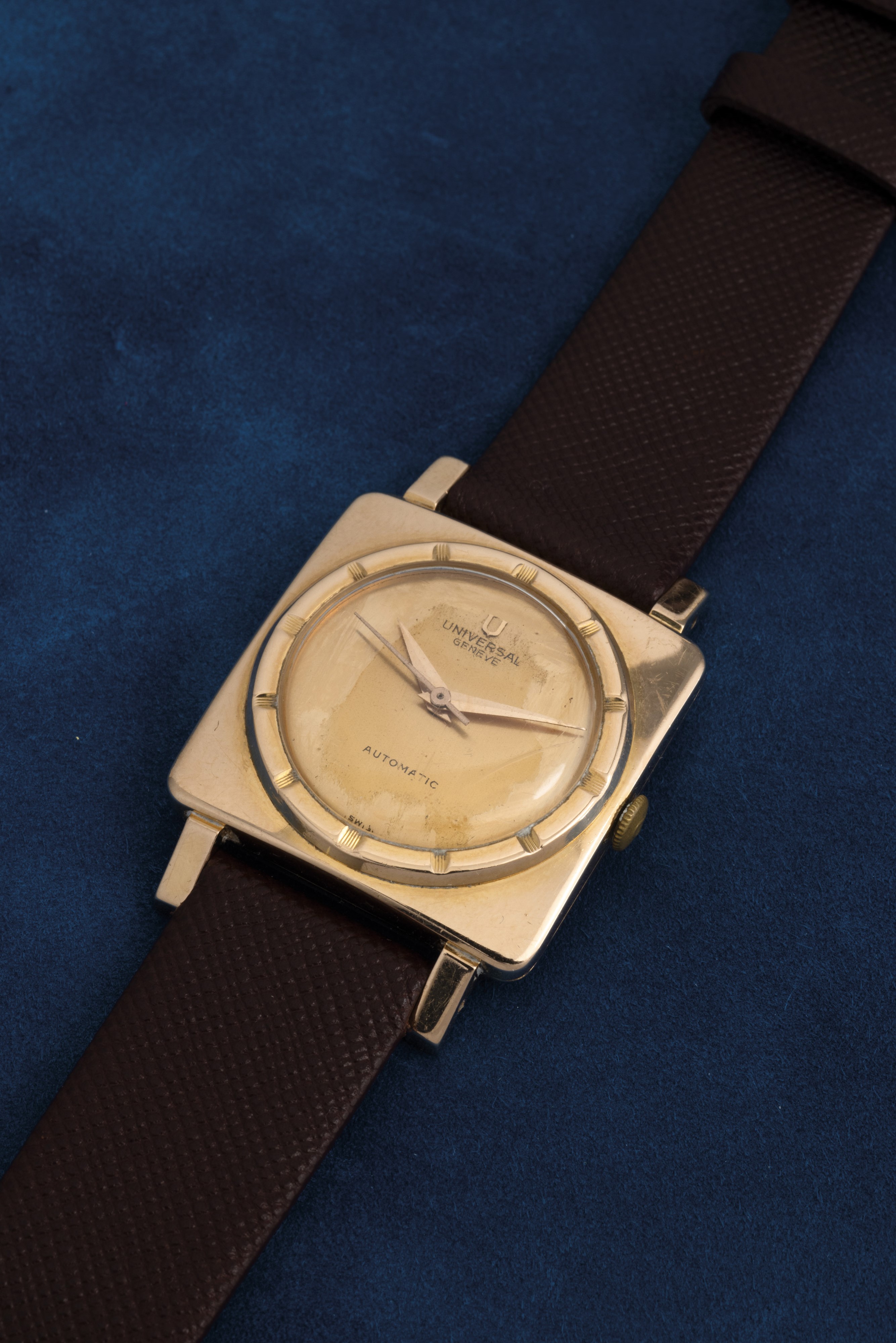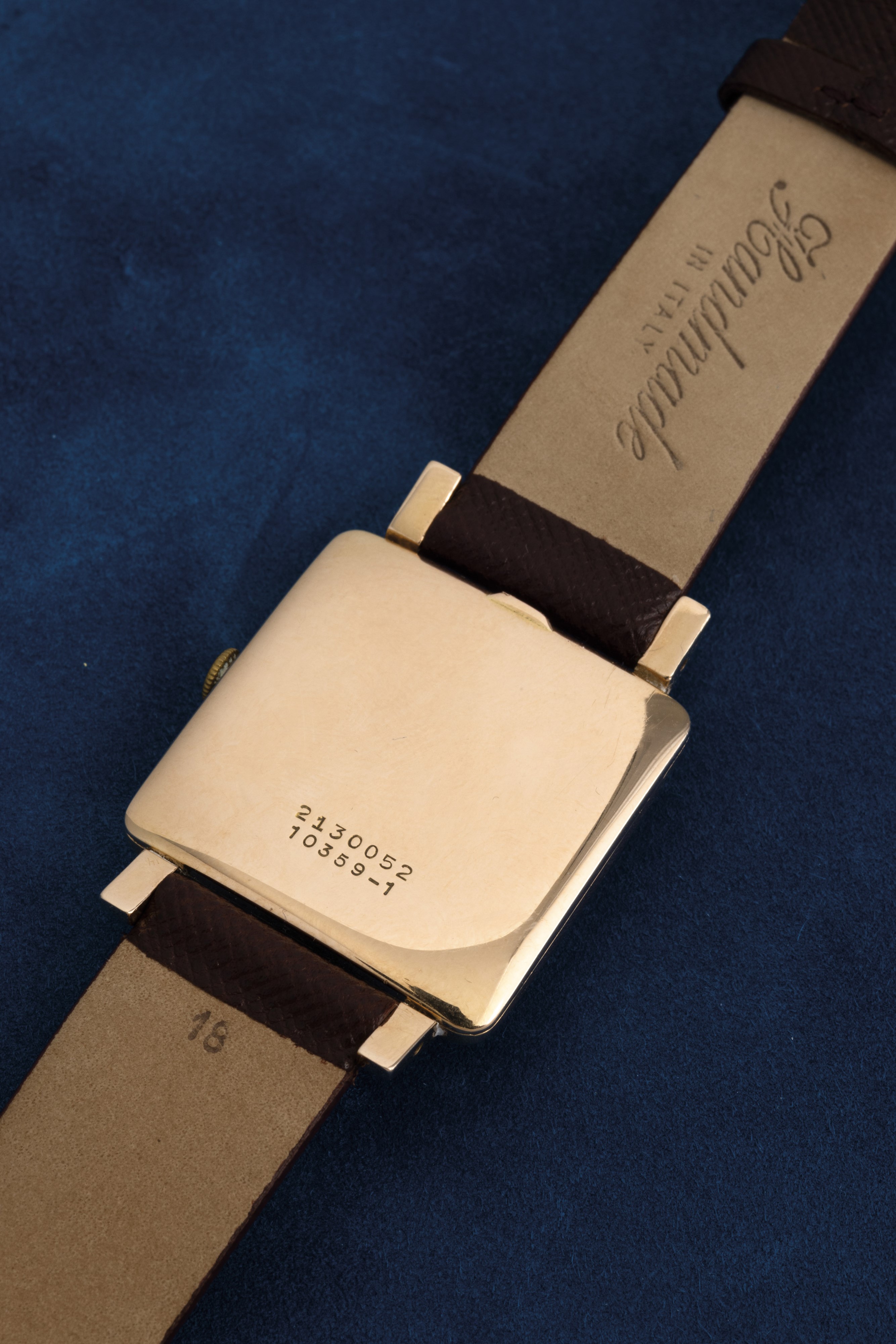 Rare and intriguing Polerouter Square rose gold self-winding with microrotor, central seconds