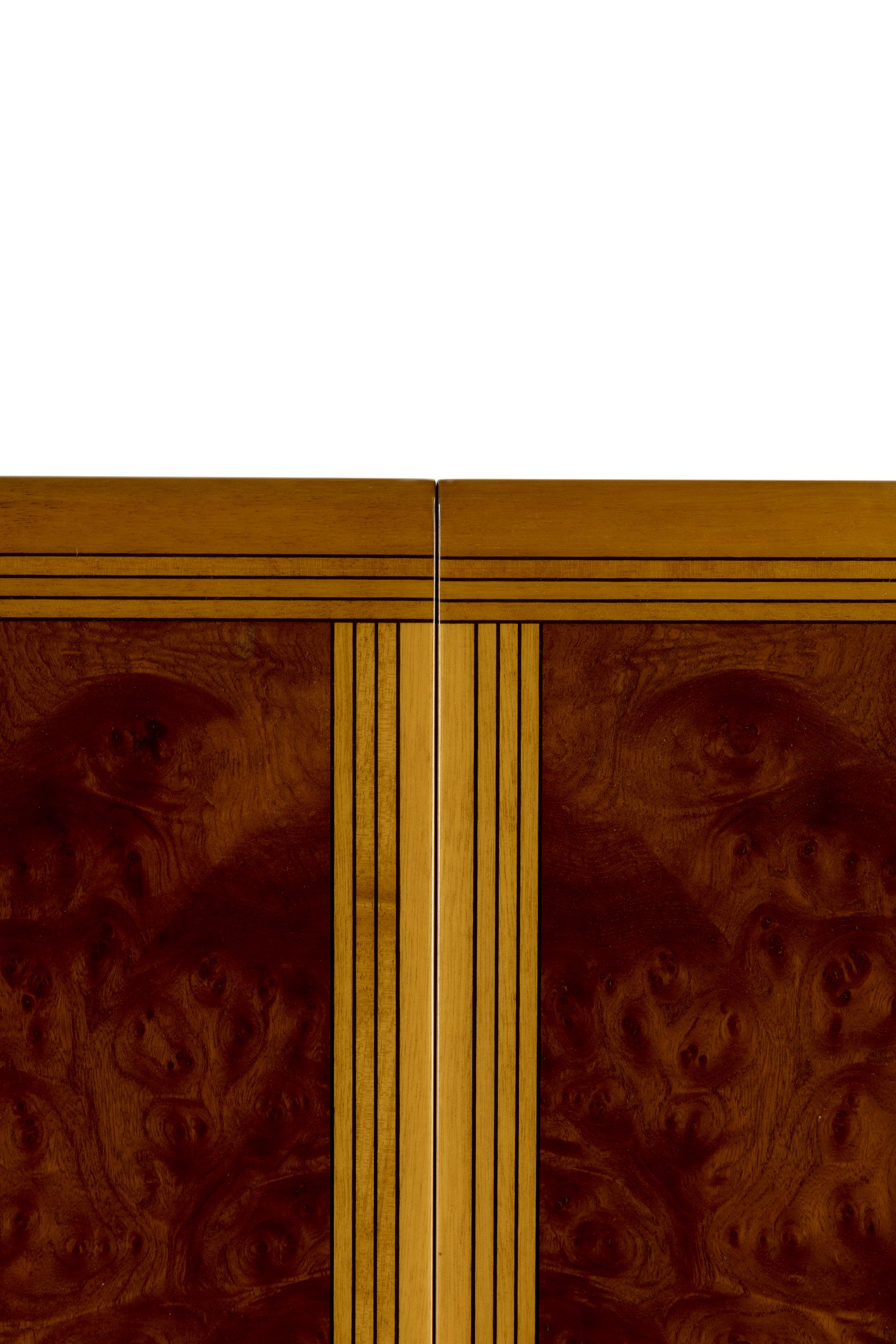 Struttura in legno laccato e legno di diverse essenze.