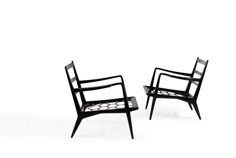 Struttura e sostegni in legno laccato e rivestimenti in tessuto.
