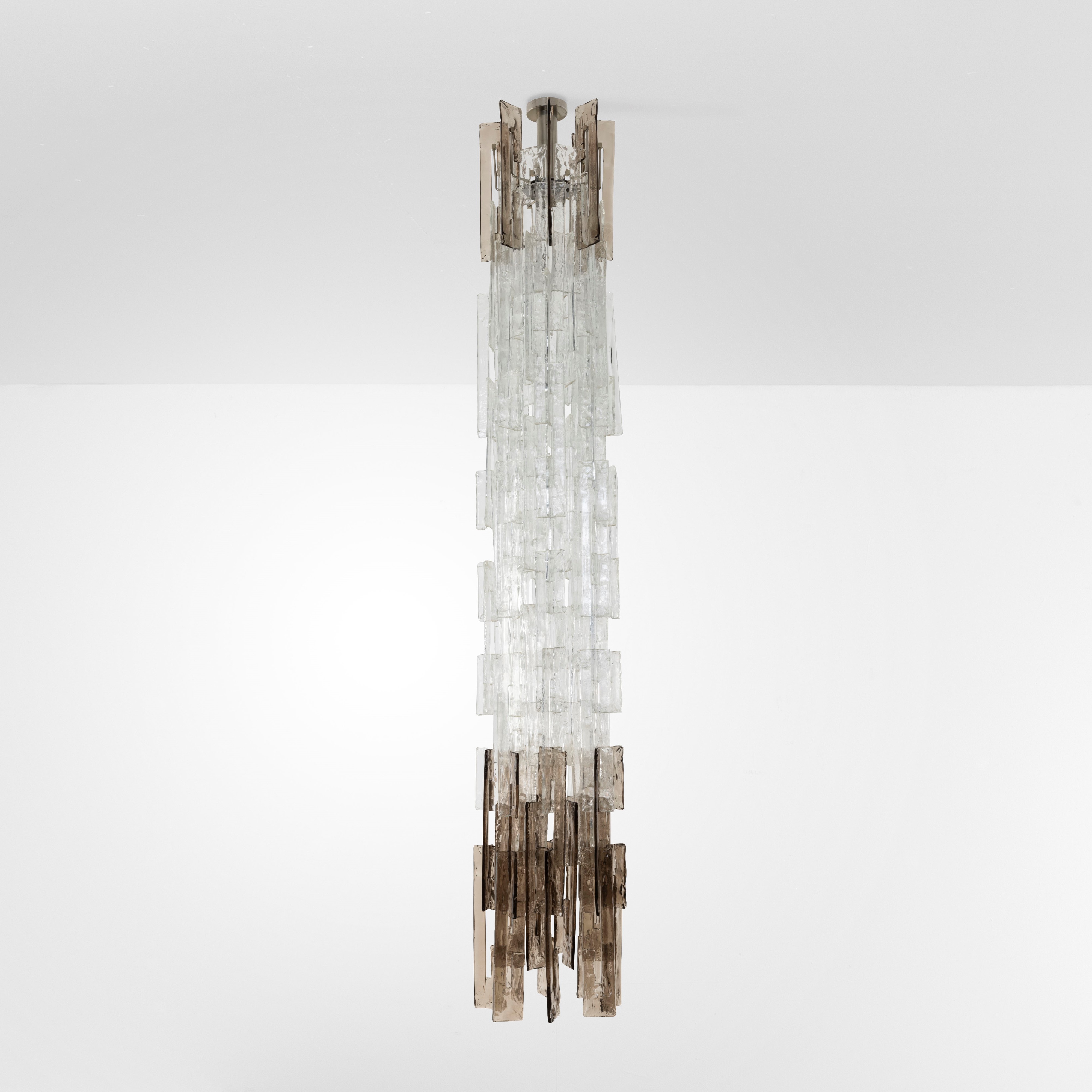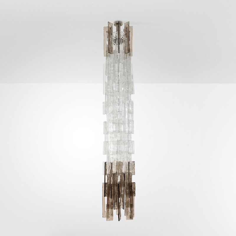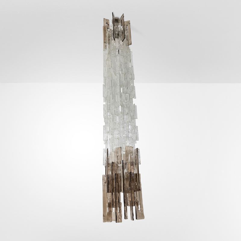 Struttura in vetro di Murano e metallo cromato.