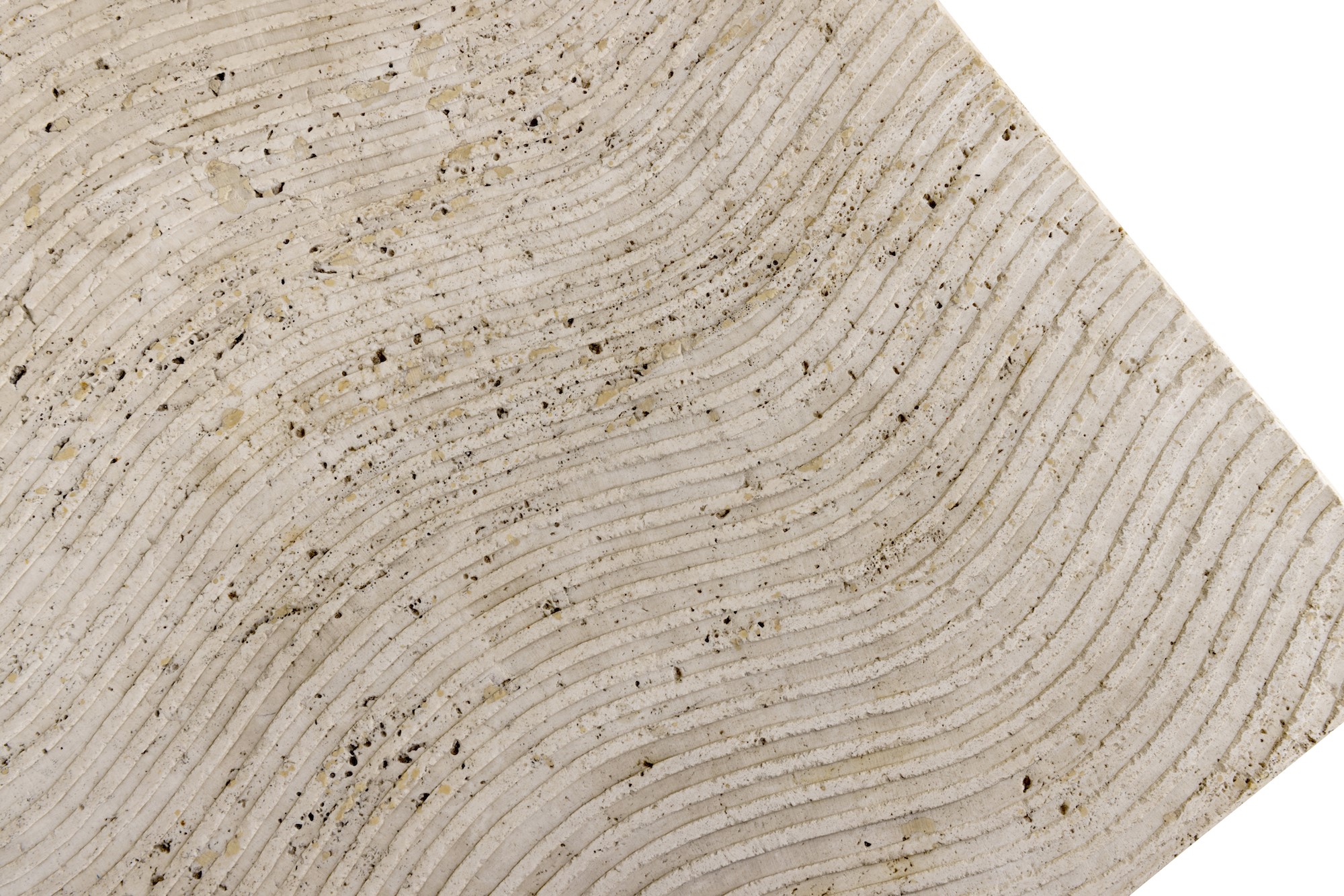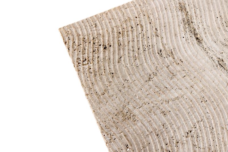 Struttura in metallo laccato e travertino lavorato.