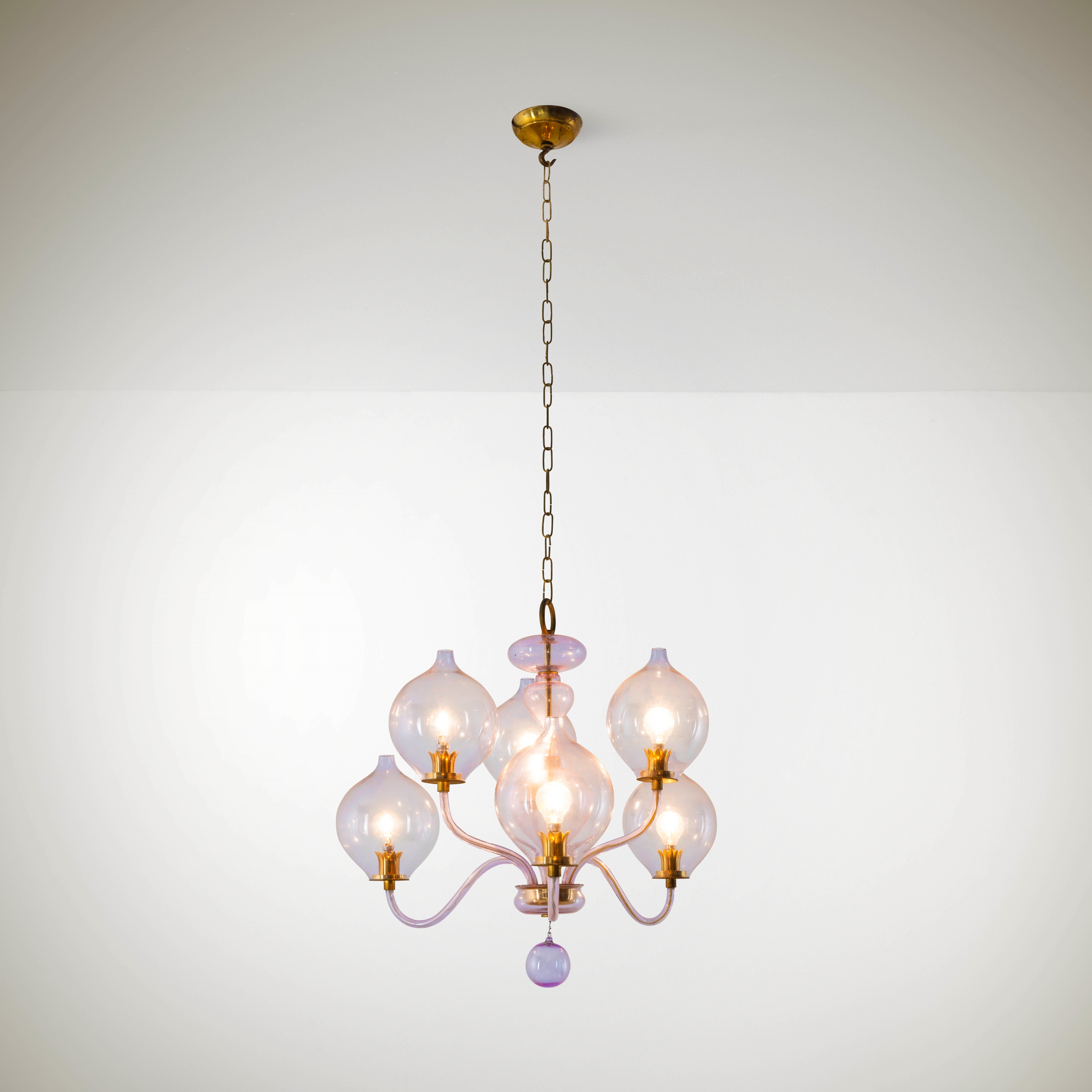 Struttura in ottone e in vetro di Murano.
