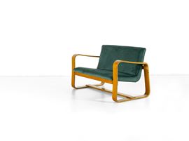 Struttura in legno curvato e rivestimento in tessuto.