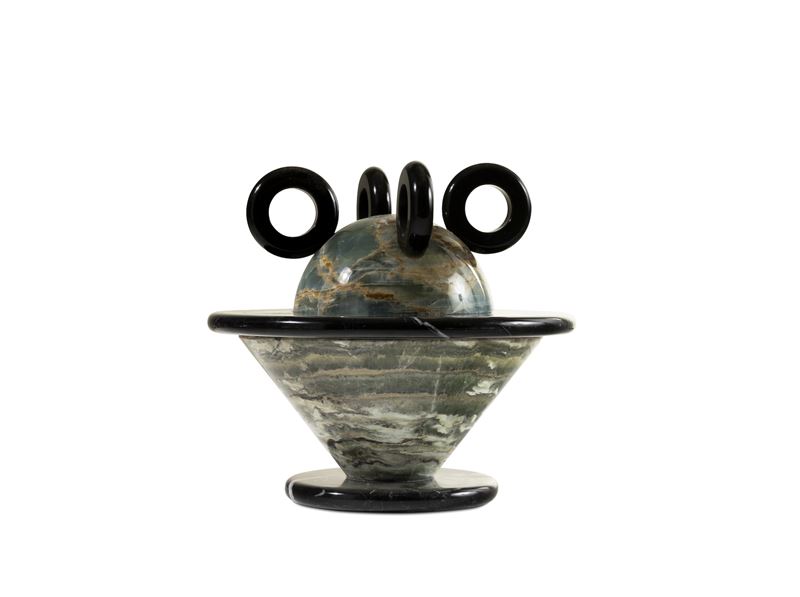 Struttura in marmo nero del Belgio, nero Marquina e onice verde.