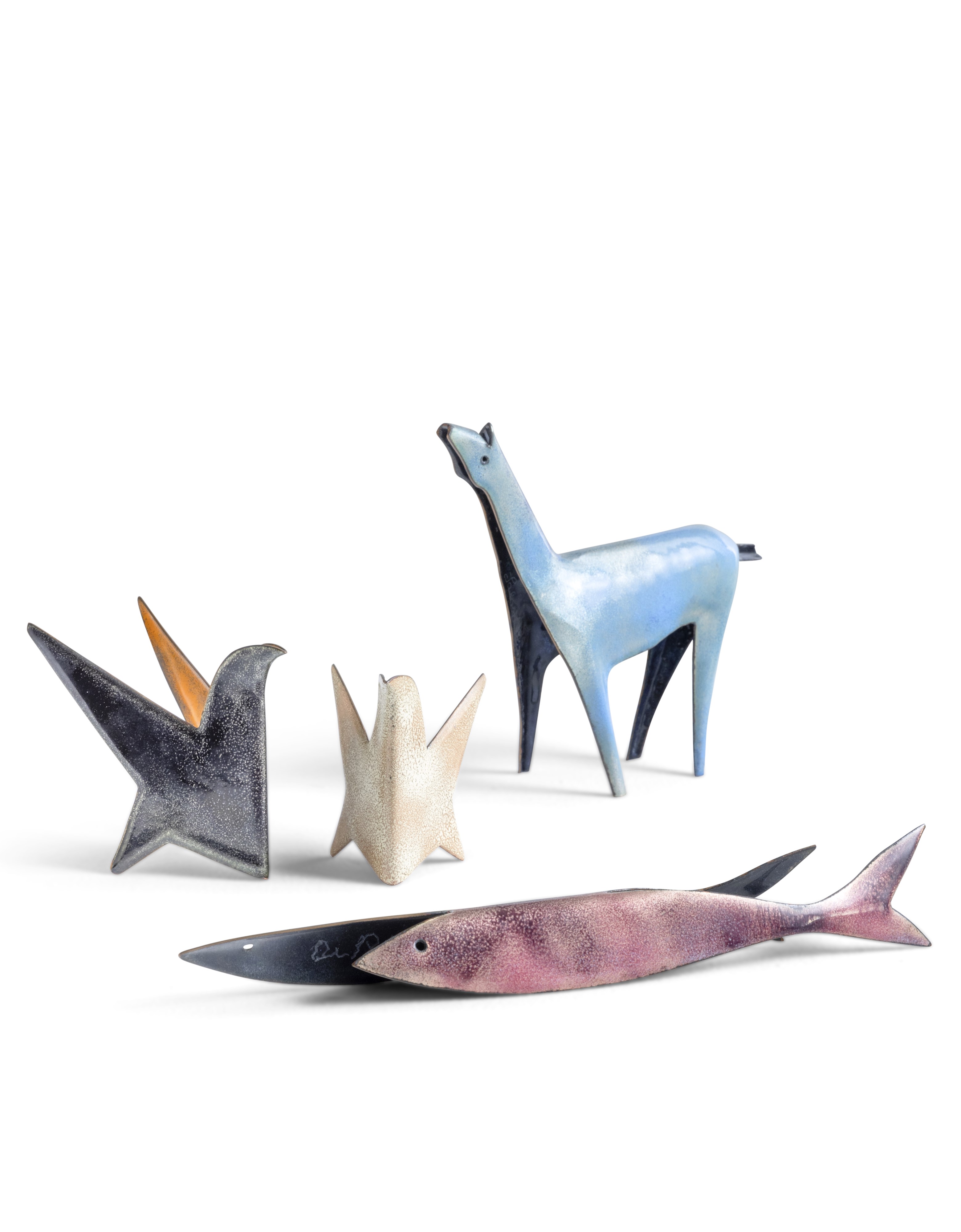 Set composto da due uccellini, un pesce e un cavallo.