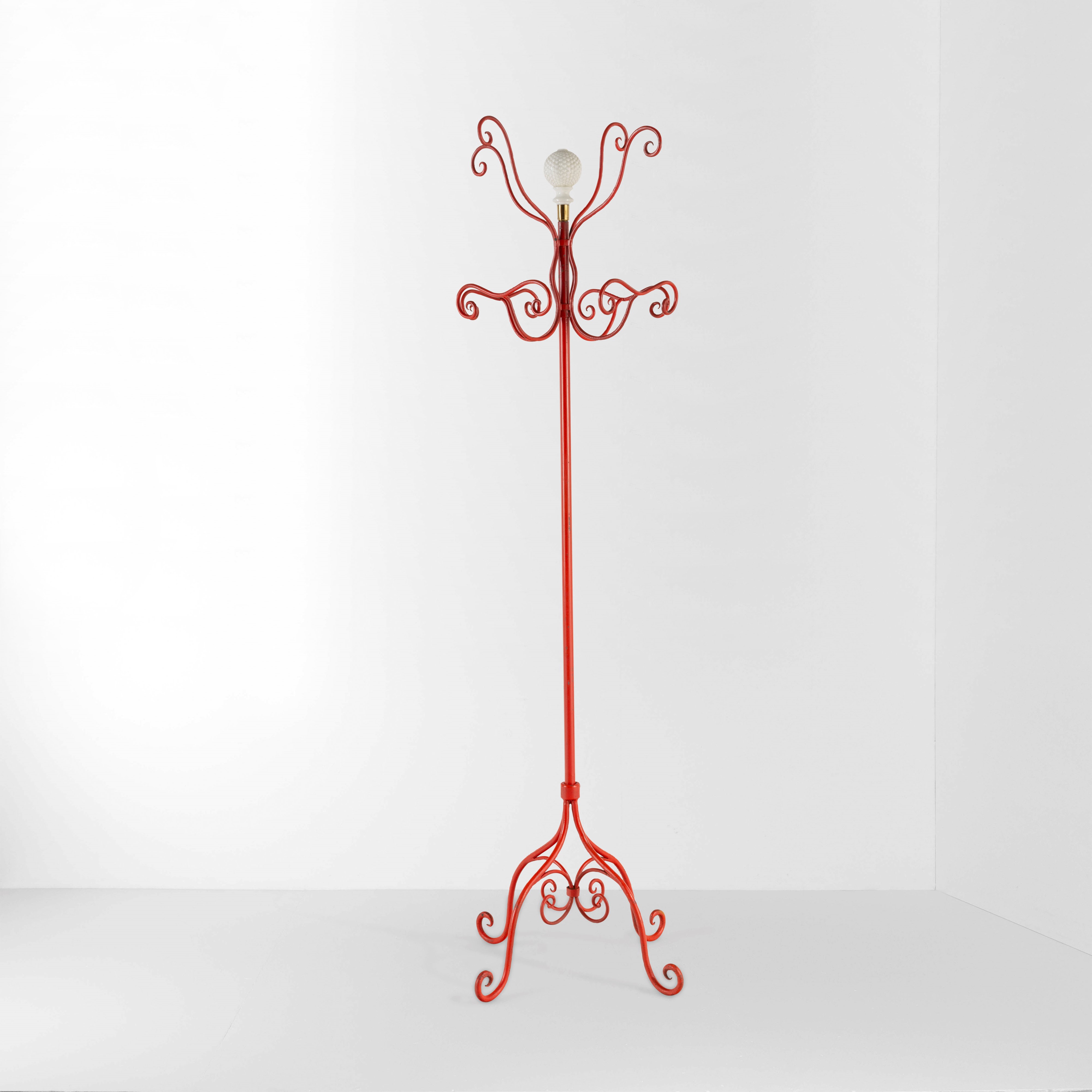 Struttura in ferro battuto laccato, sfera in opalina decorativa e particolari in ottone.