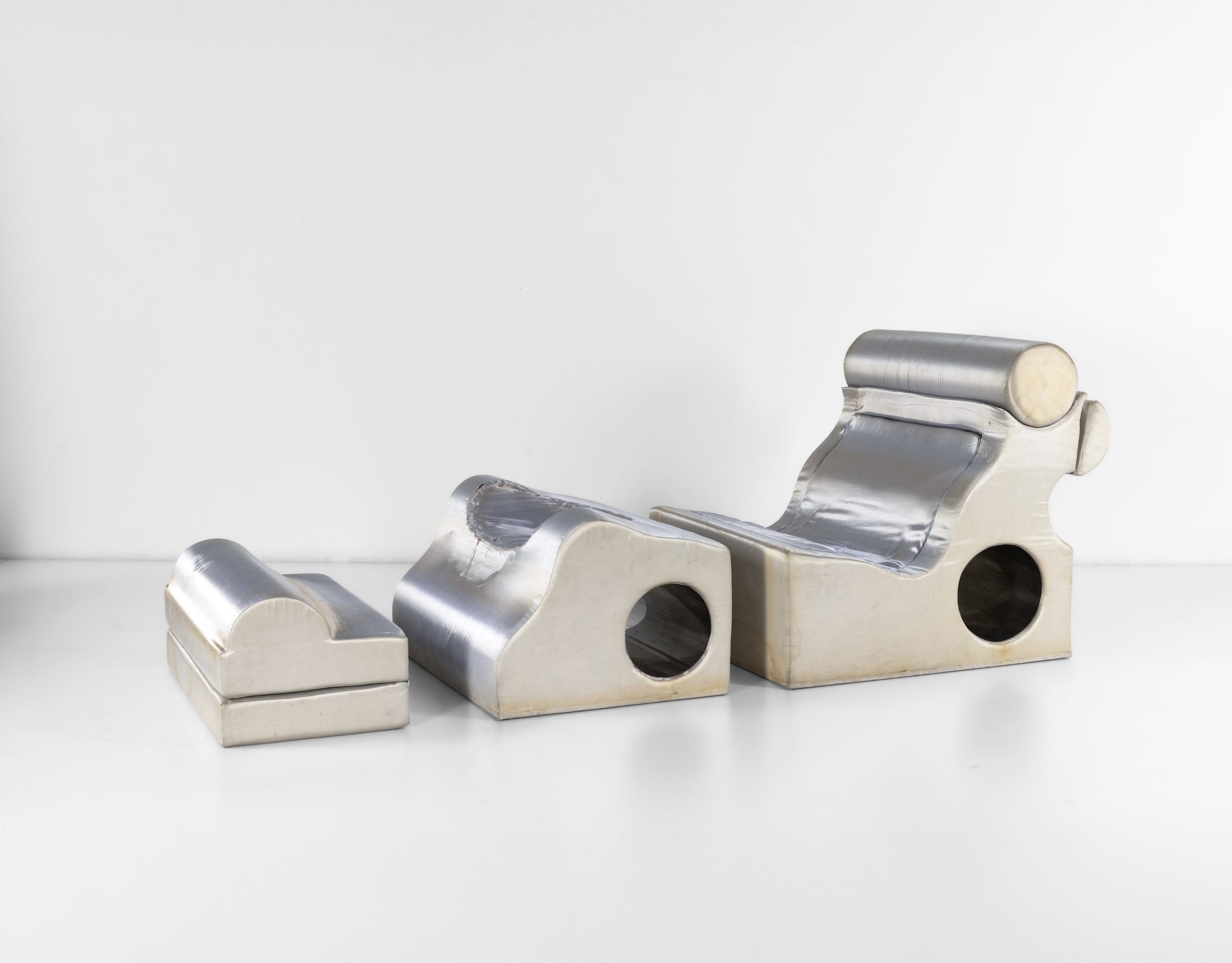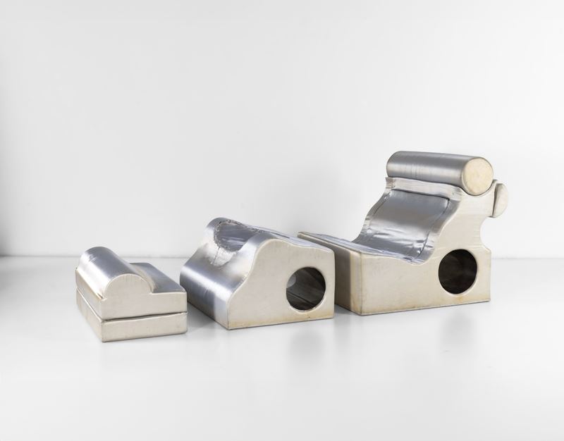 Struttura in poliuretano espanso e metallo, rivestimenti in seta.