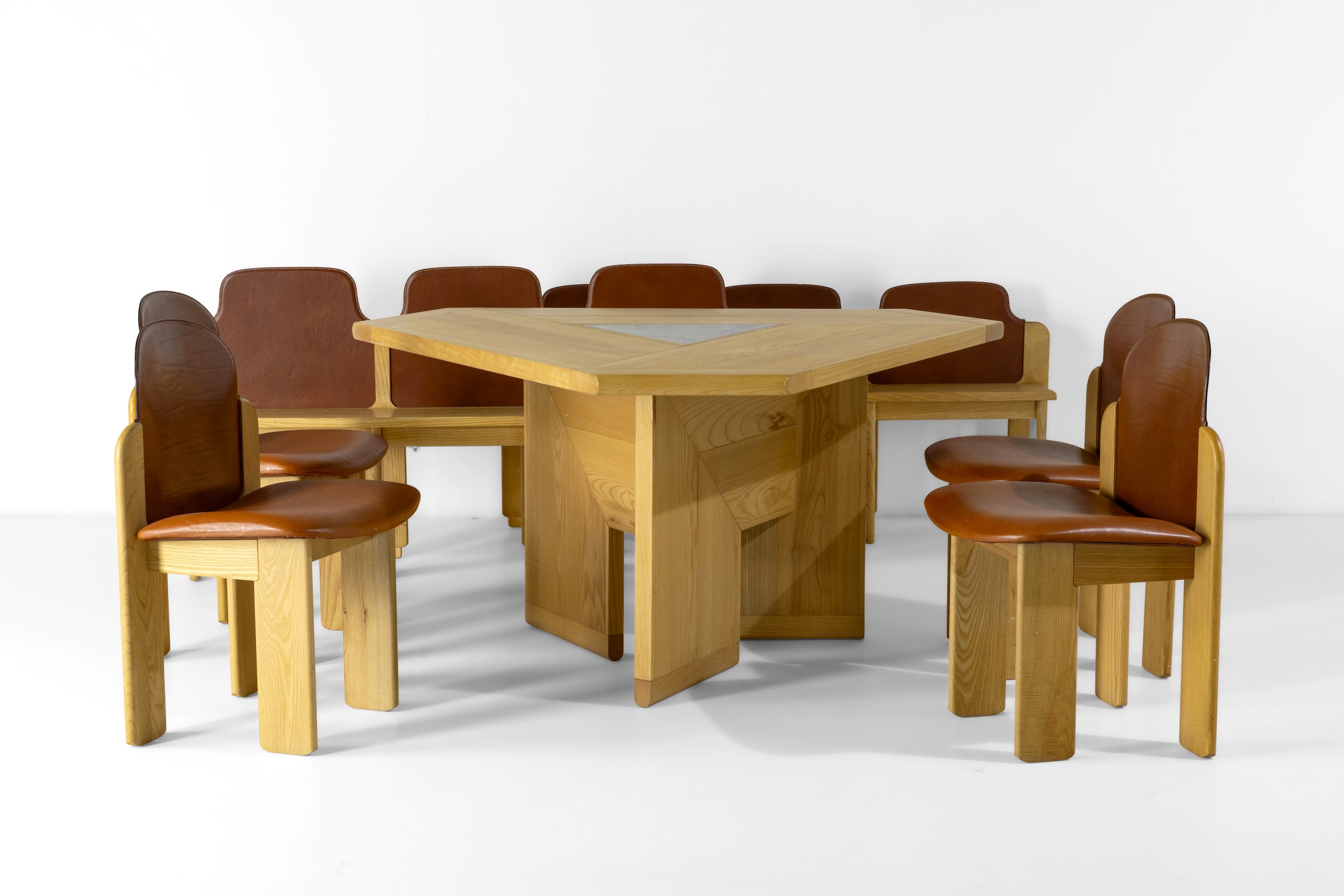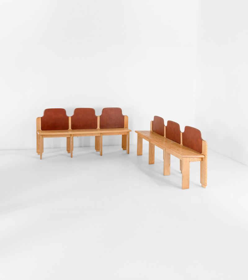Struttura in legno e rivestimento delle sedute in pelle.