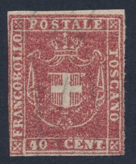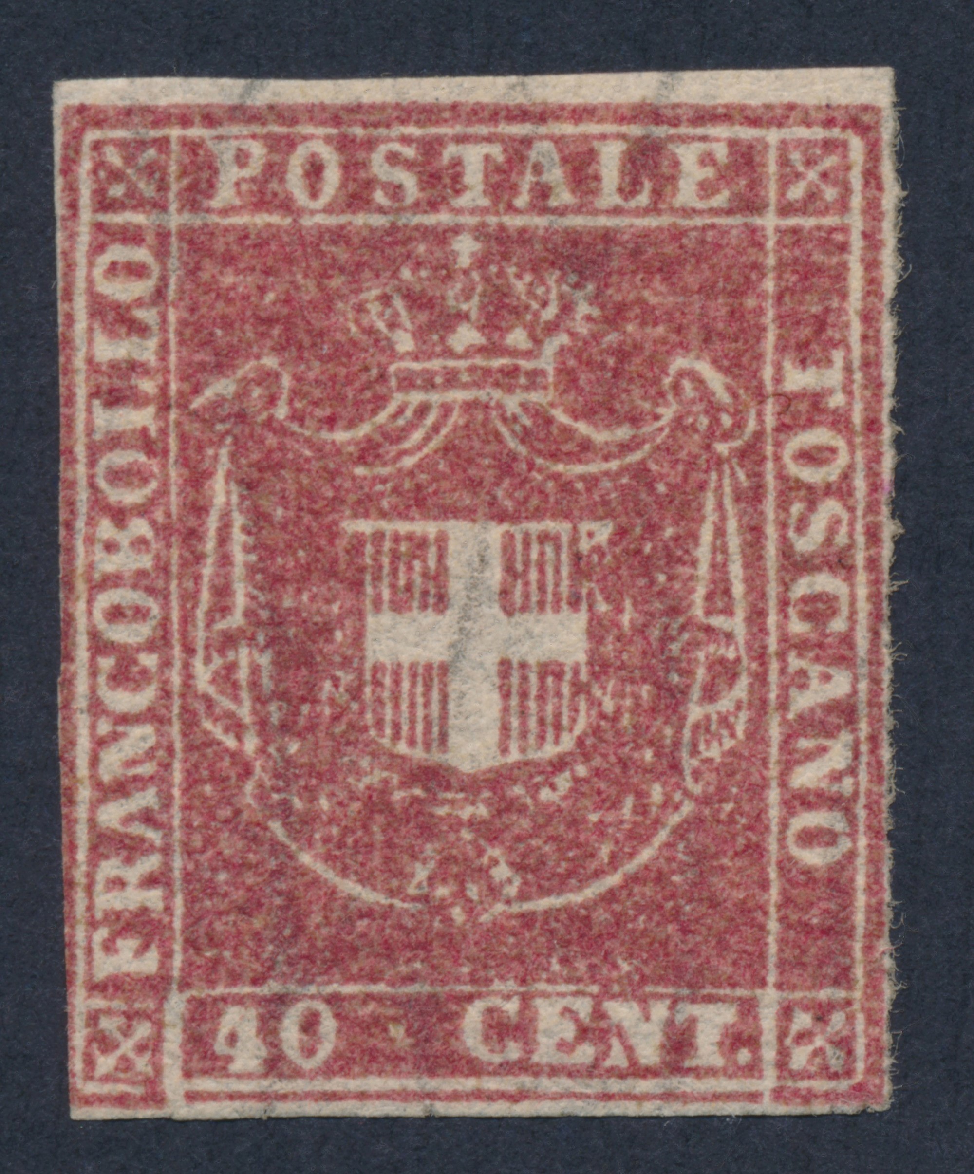 1860, Toscana, Governo provvisorio, 40 cent. carminio (21), gomma originale integra