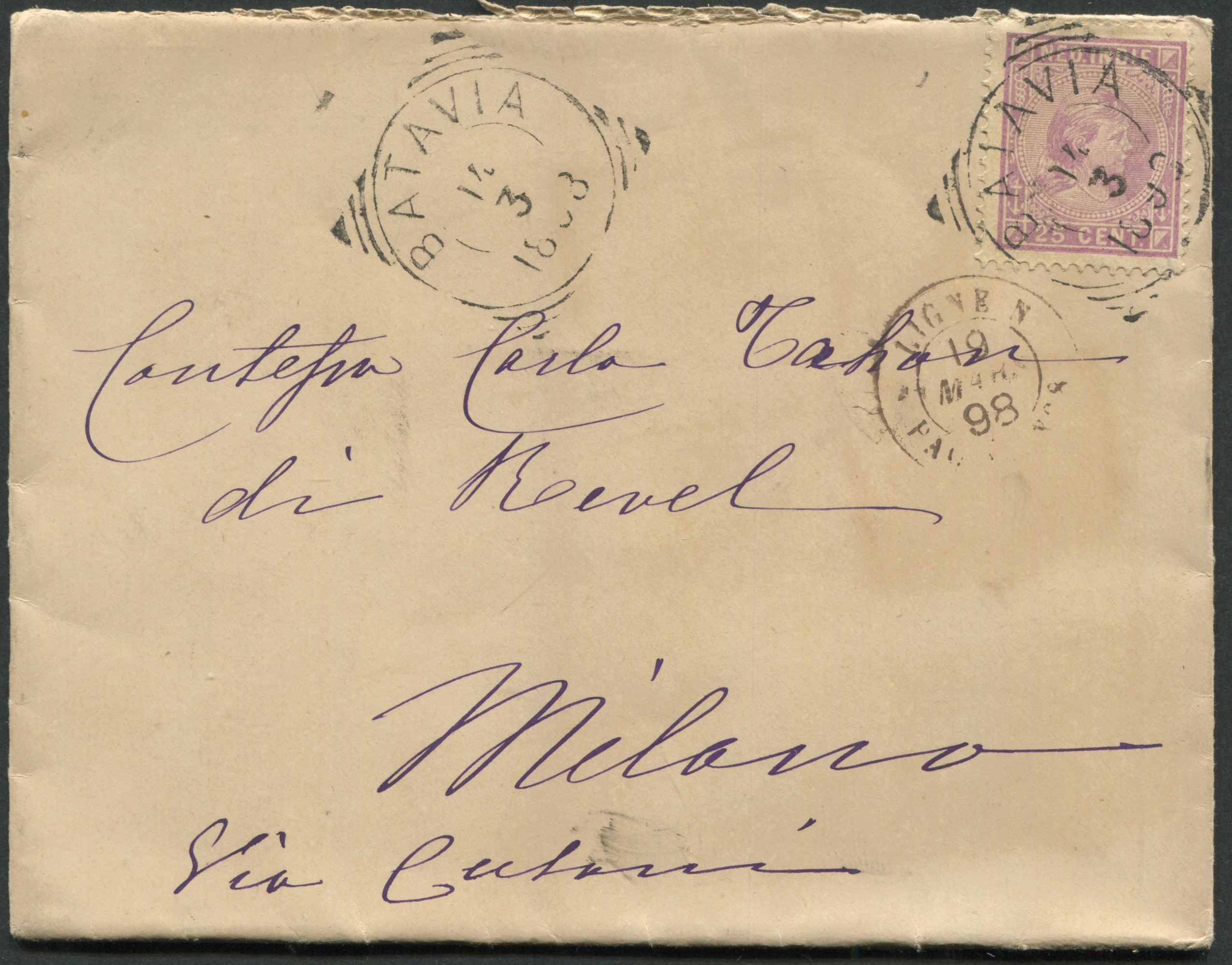 1898, Indie Olandesi, busta da Batavia per Milano del 14 marzo